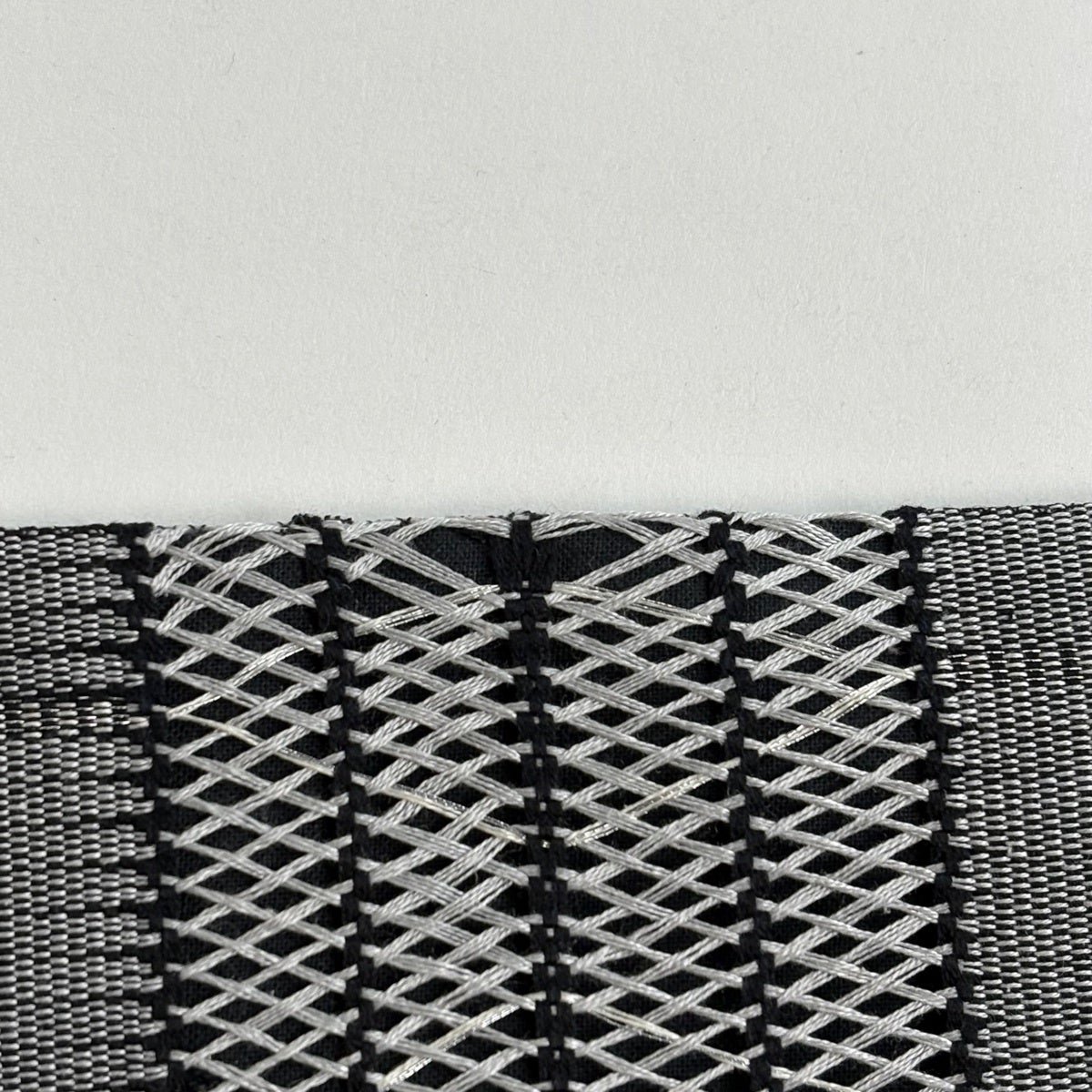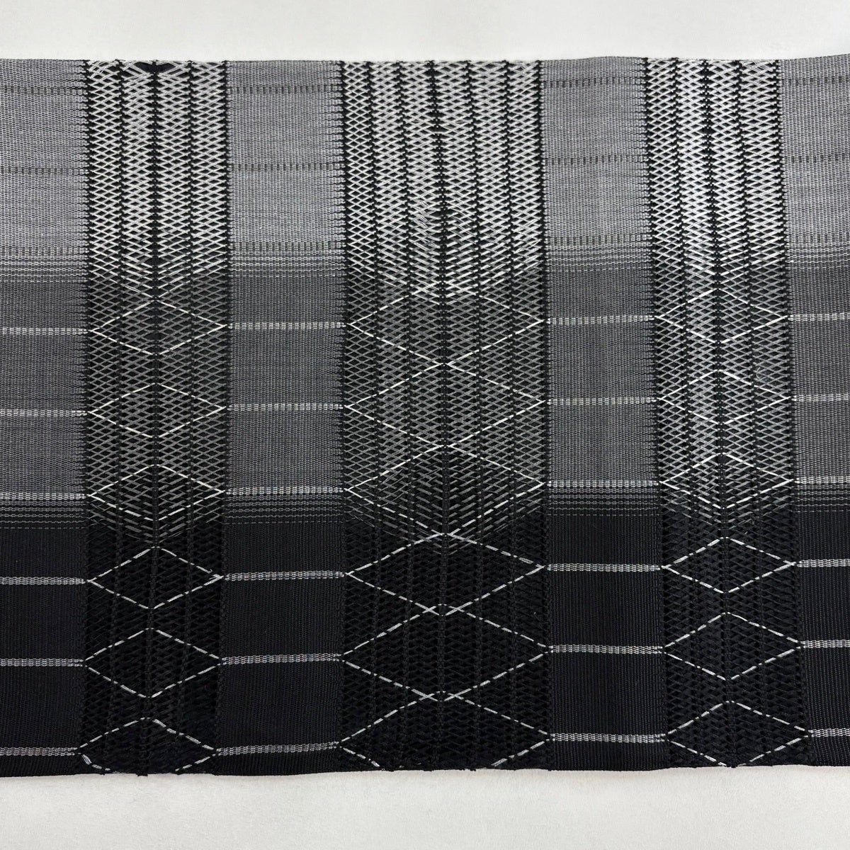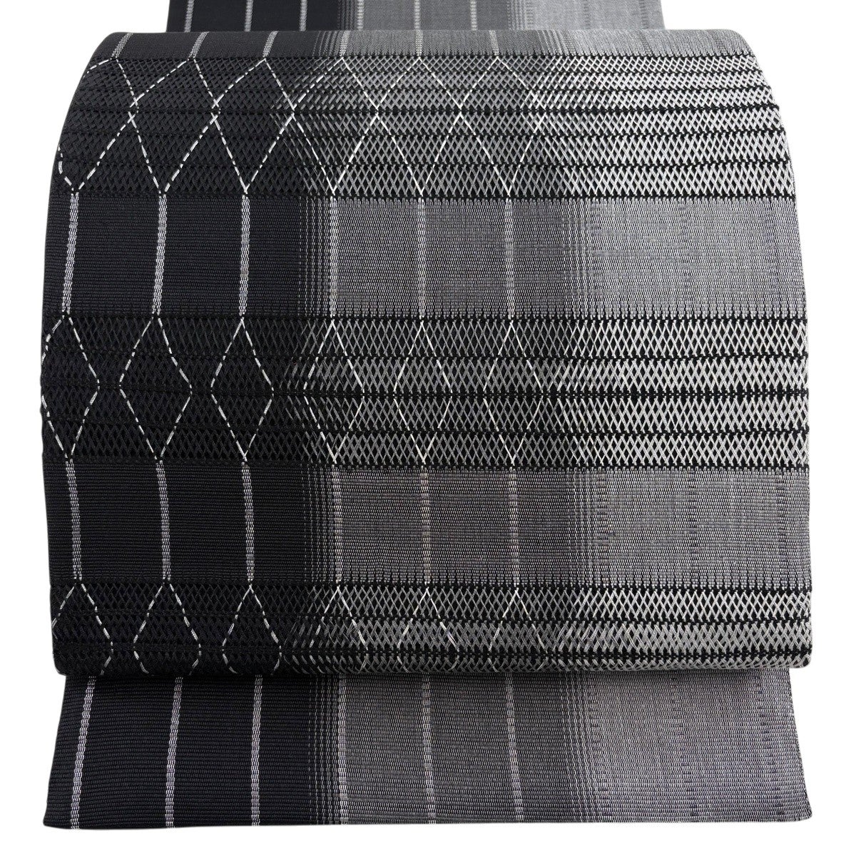 【美品】 名古屋帯 秀品 夏帯 八寸名古屋帯 斜め格子 幾何学 黒灰 正絹