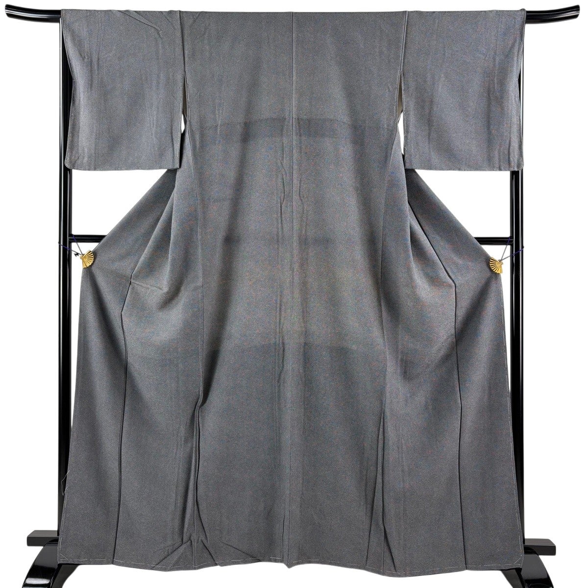 男着物 身丈135.5cm 裄丈65cm S 薄物 夏紬 黒灰 正絹 秀品