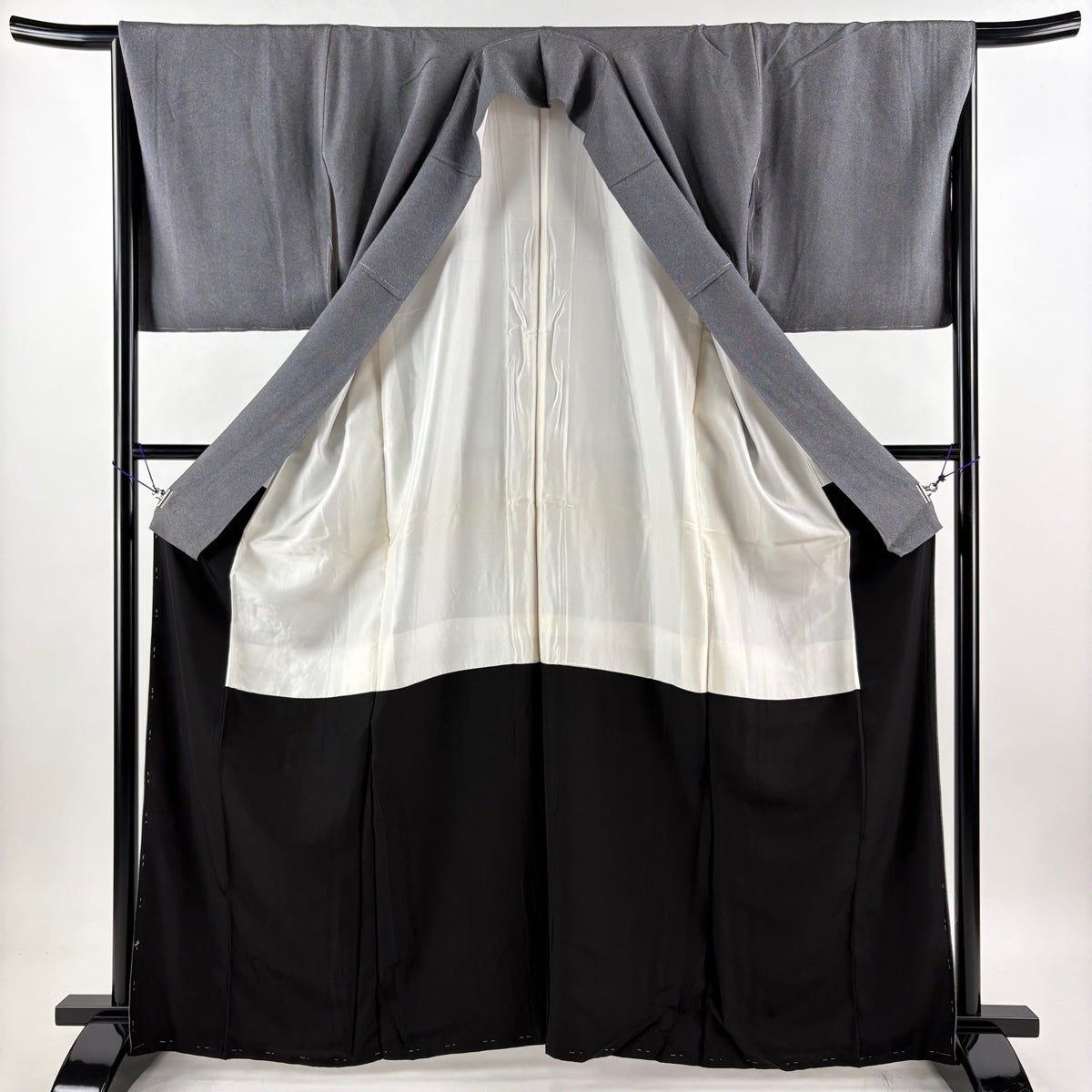 紬 身丈154cm 裄丈63.5cm S 袷 華文 黒灰 正絹 秀品