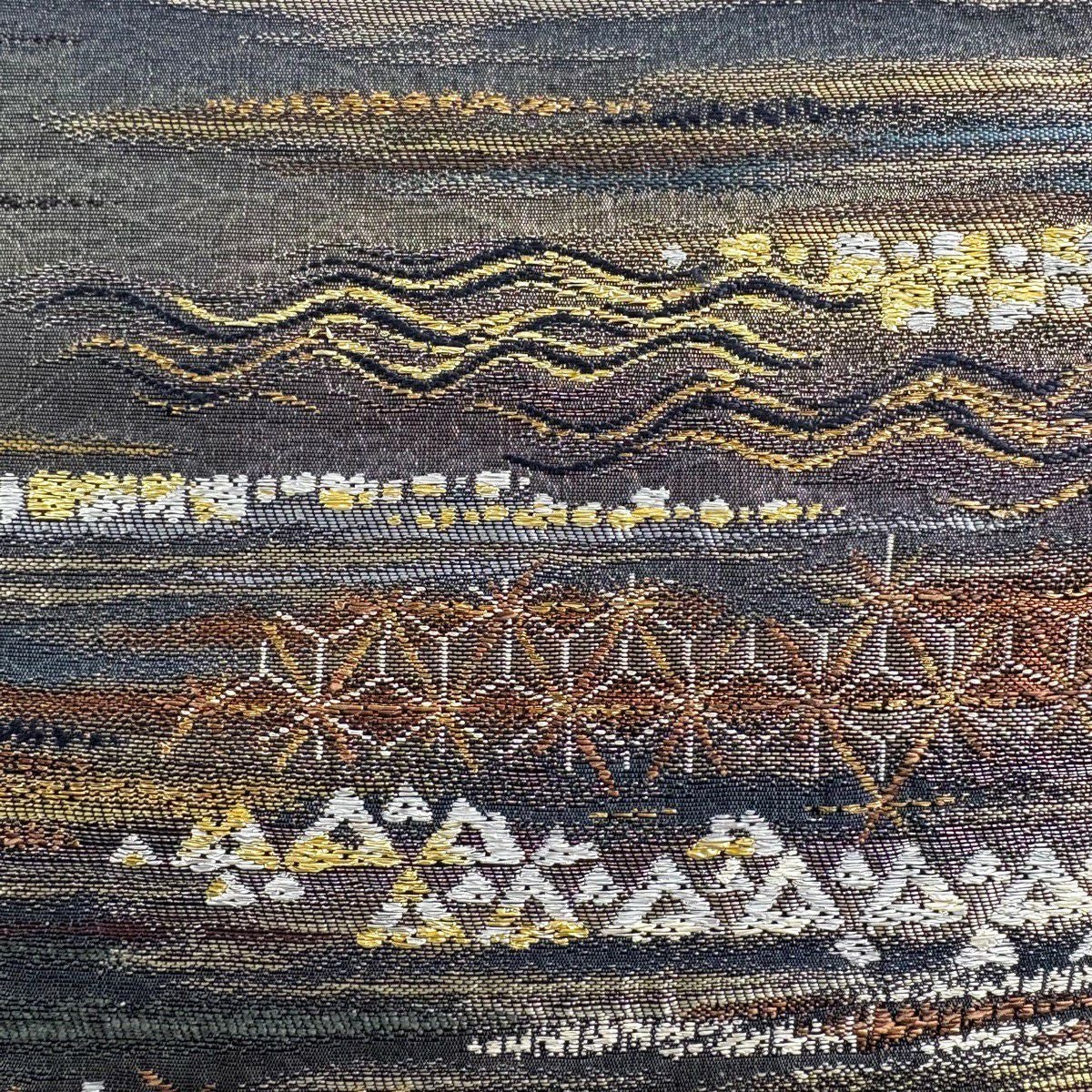 【美品】 名古屋帯 秀品 幾何学 金糸 墨色 正絹
