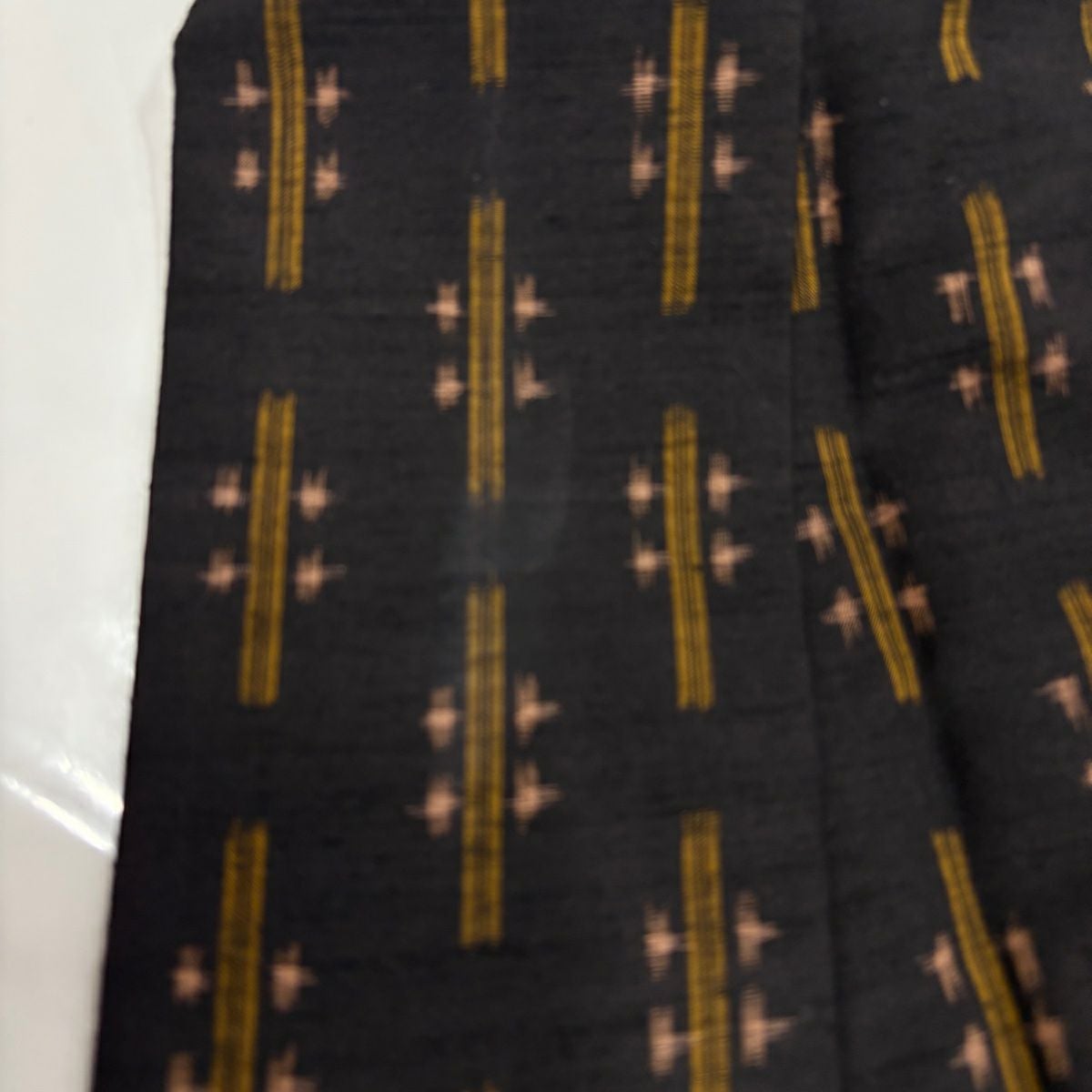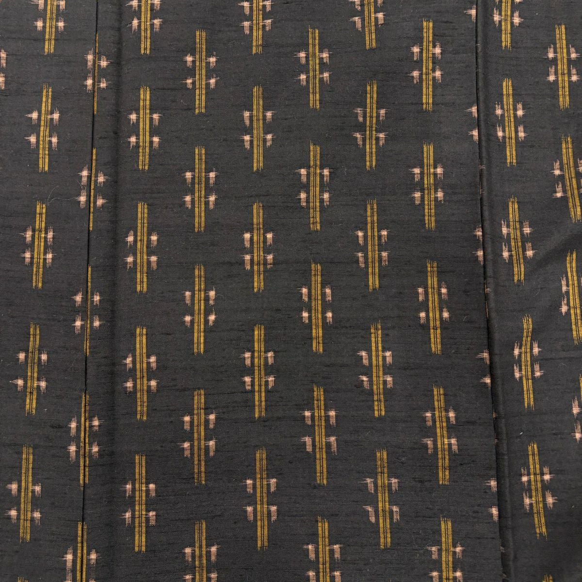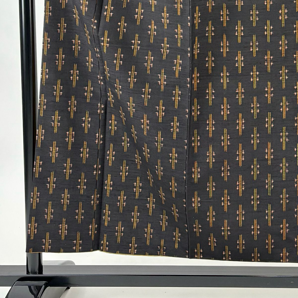 紬 身丈167cm 裄丈66.5cm M 袷 置賜紬 証紙あり 縞 十字絣 墨色 正絹 名品