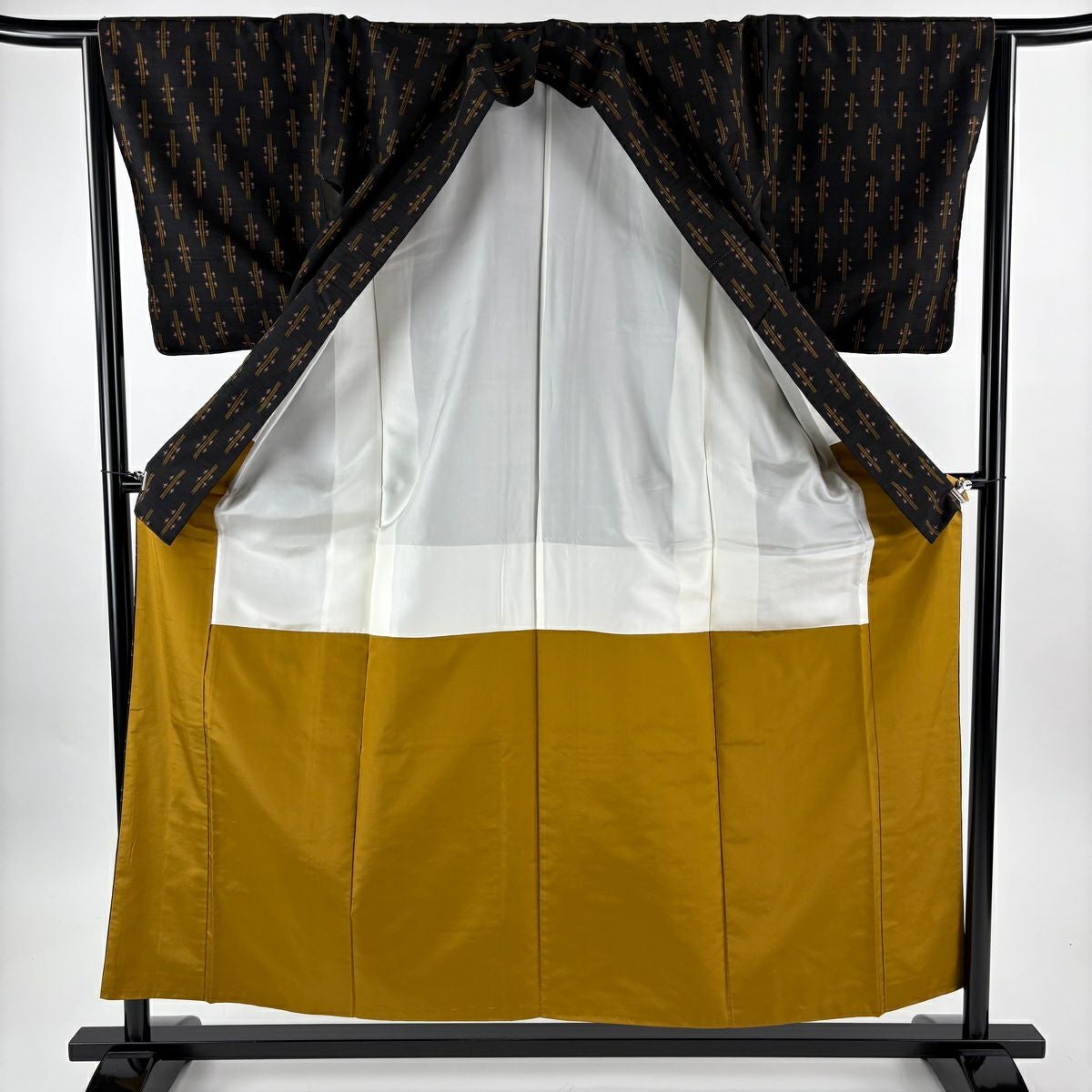 【在庫一掃】 紬 身丈161.5cm 裄丈64cm M 袷 華文 色紙 墨色 正絹 秀品