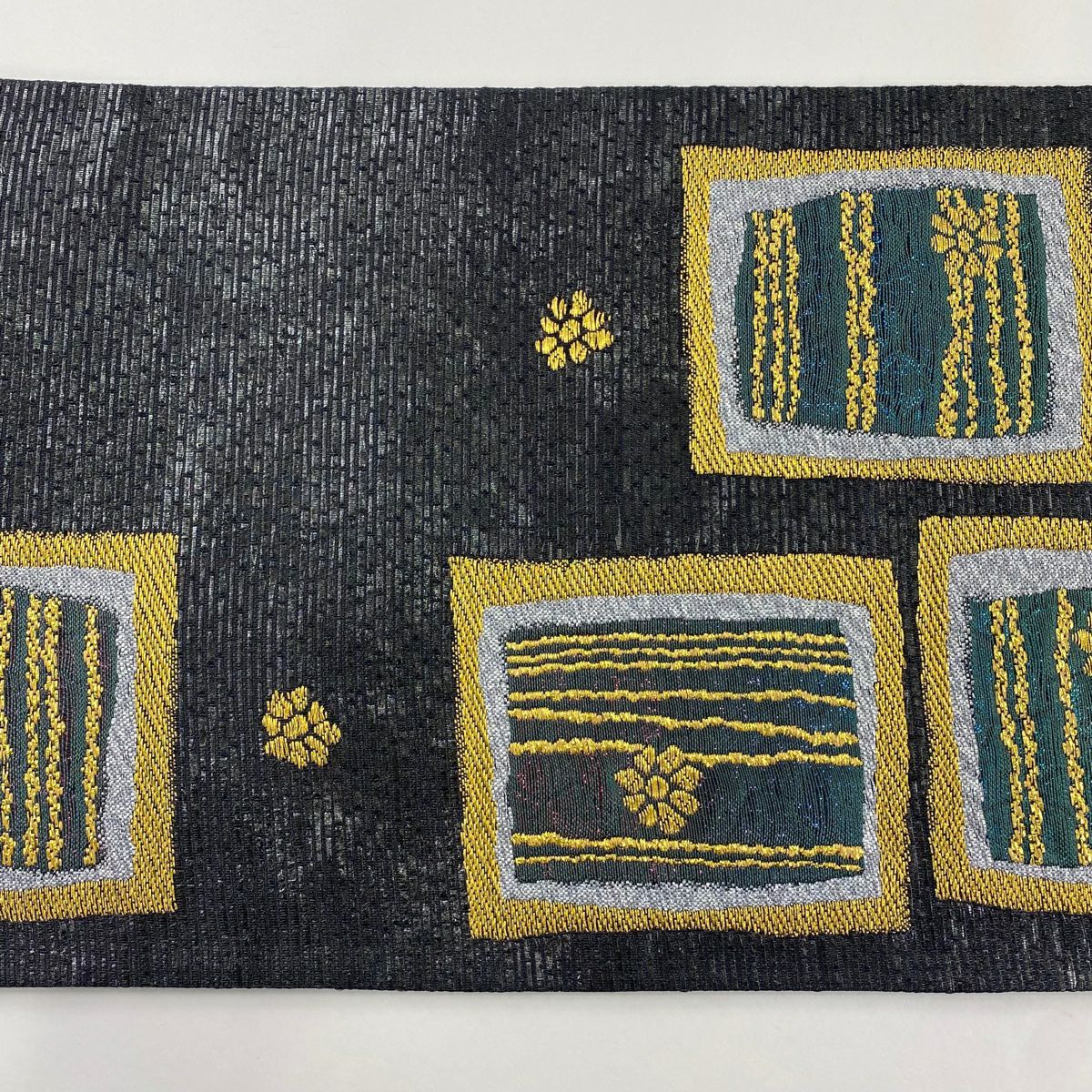 袋帯 名品 証紙あり 幾何学模様 箔 ラメ糸 墨色 六通 正絹