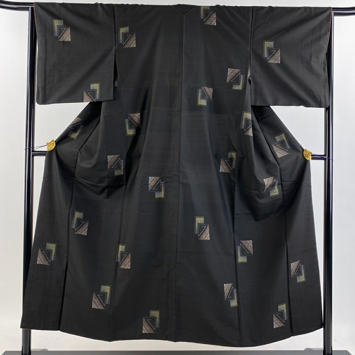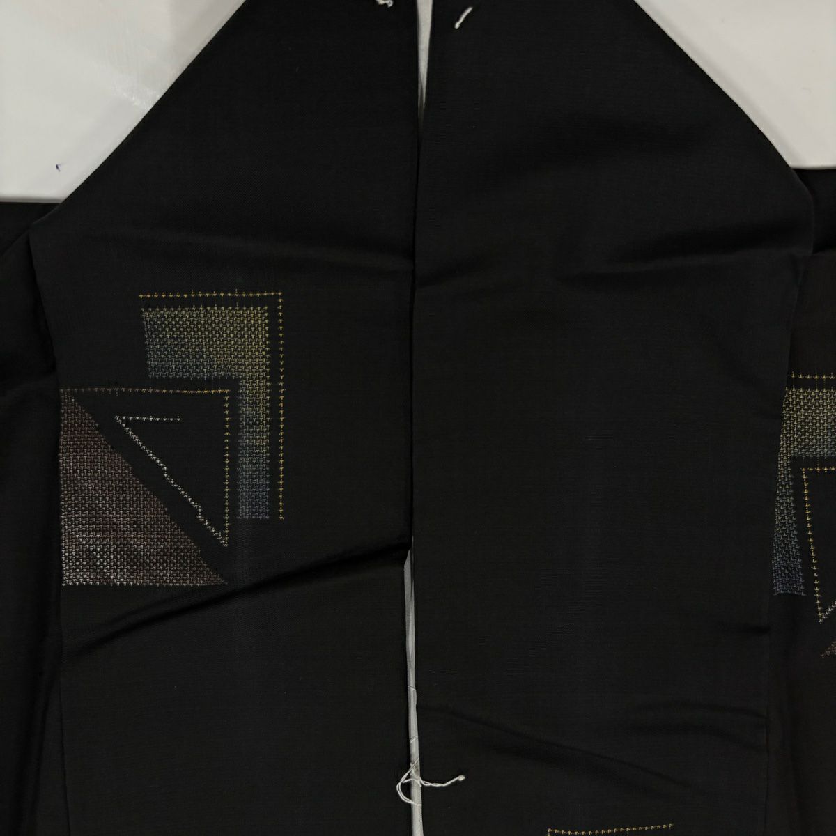 他の画像を見る 【最終値引き】 64%OFF 訪問着 身丈155cm 裄丈61.5cm S 袷 紬地 落款あり 幾何学模様 刺し子刺繍 墨色 正絹 名品 K50 当店通常価格 ¥ 13,100 ¥ 4,620 税込