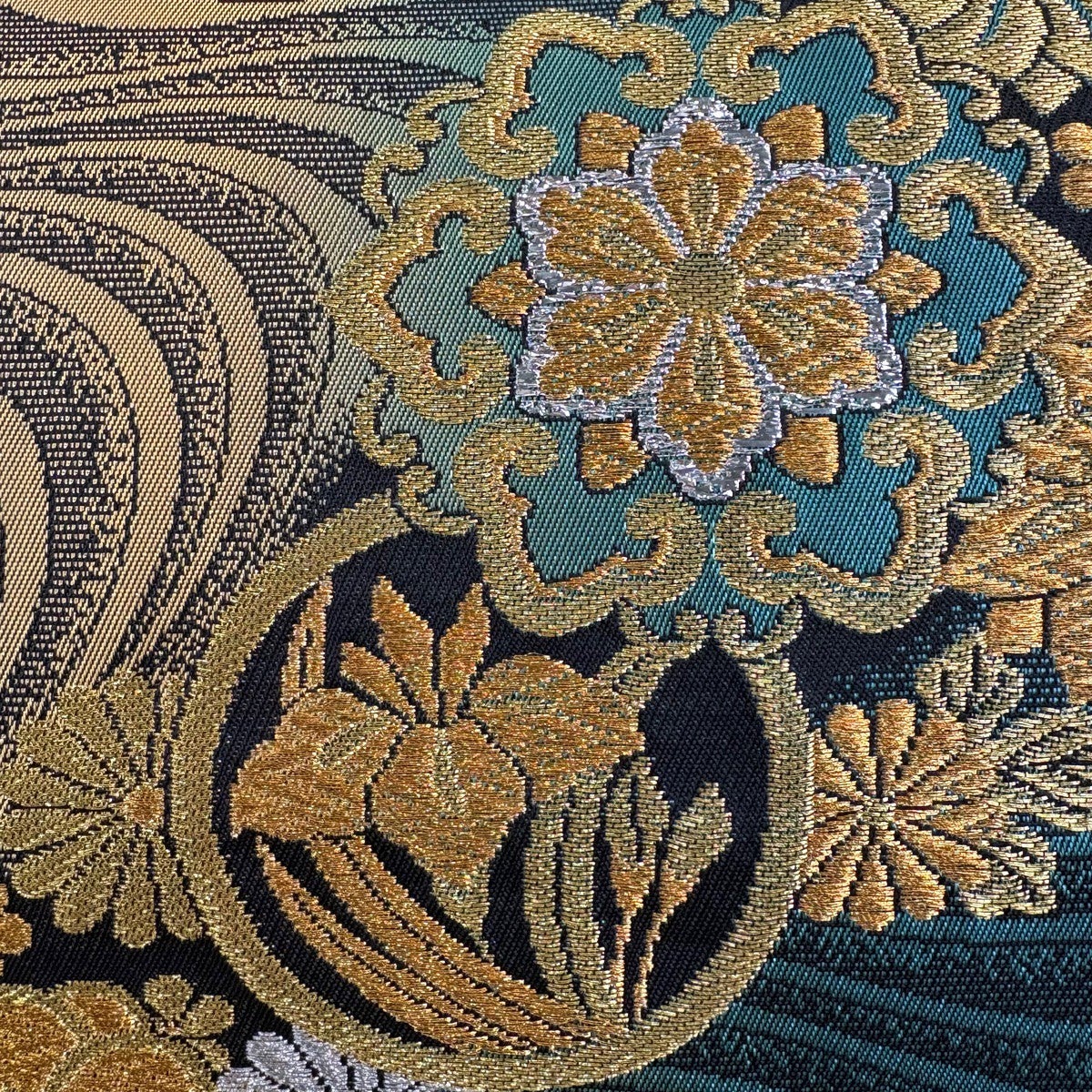 袋帯 秀品 関西仕立て 菊 桐 金糸 唐織 黒 六通 正絹