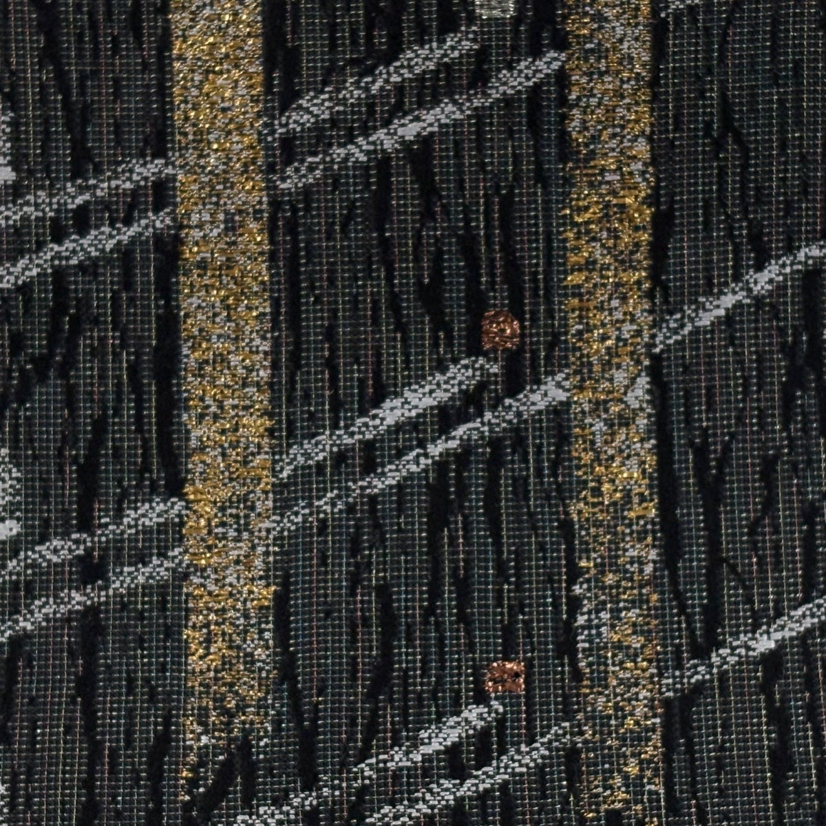 袋帯 秀品 本草木染 霞 幾何学模様 箔 黒 六通 正絹