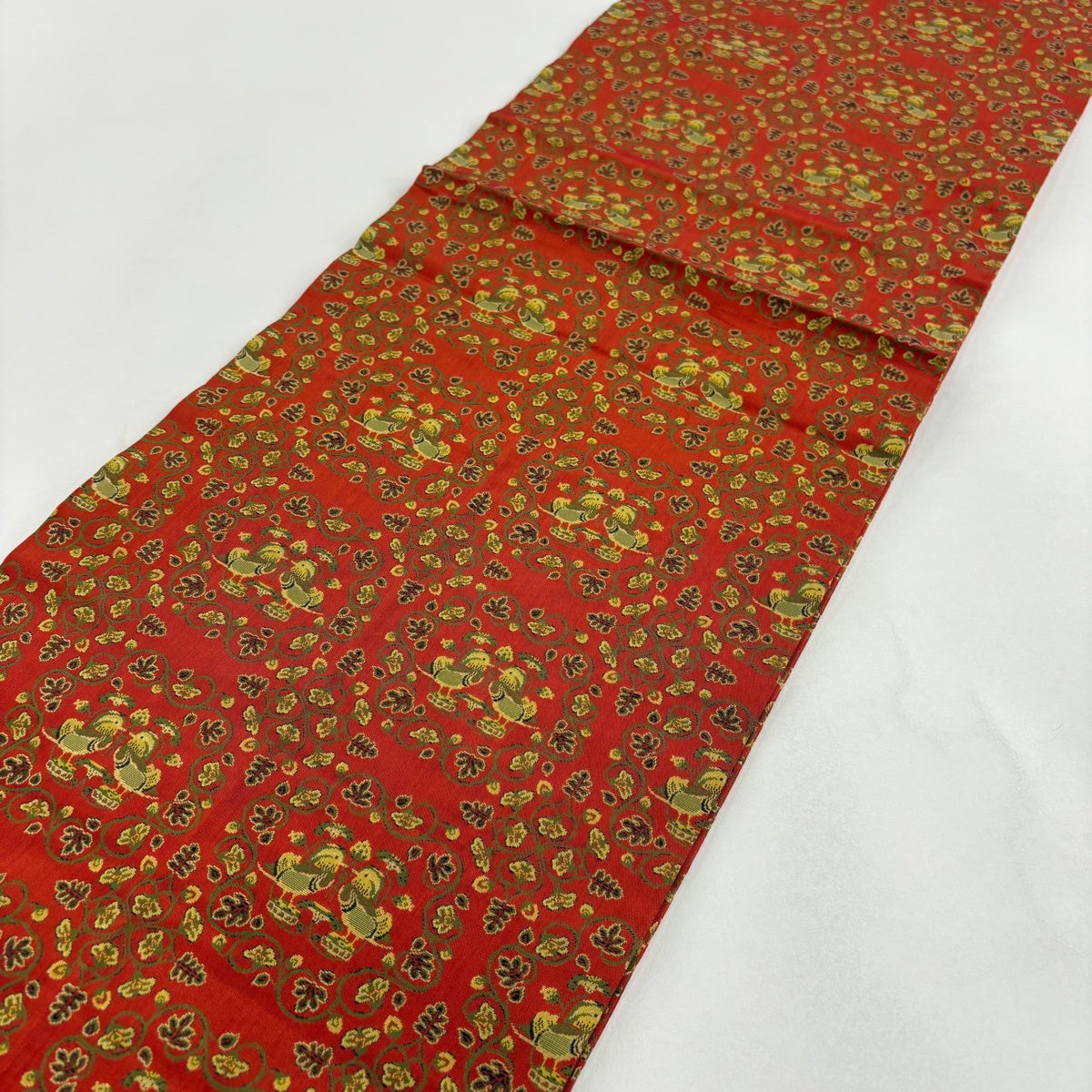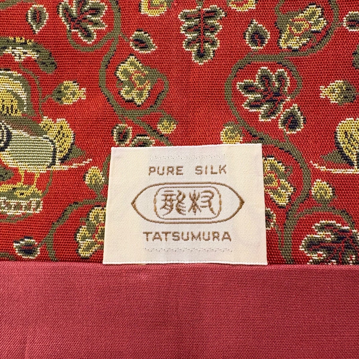 【最終値引き】 70%OFF 【美品】 袋帯 逸品 龍村平蔵 落款あり 草花 箔 刺繍 朱色 お太鼓柄 正絹 K70