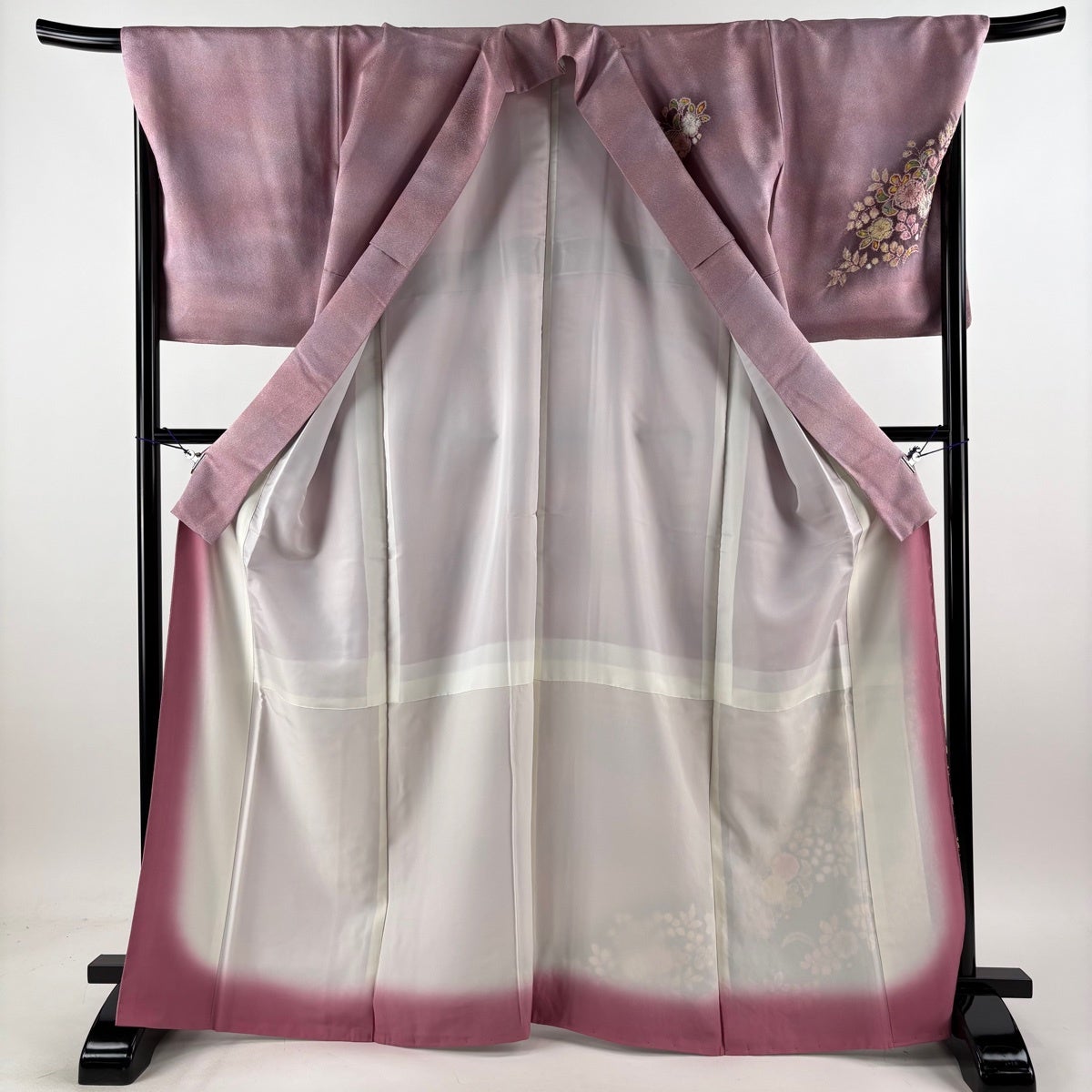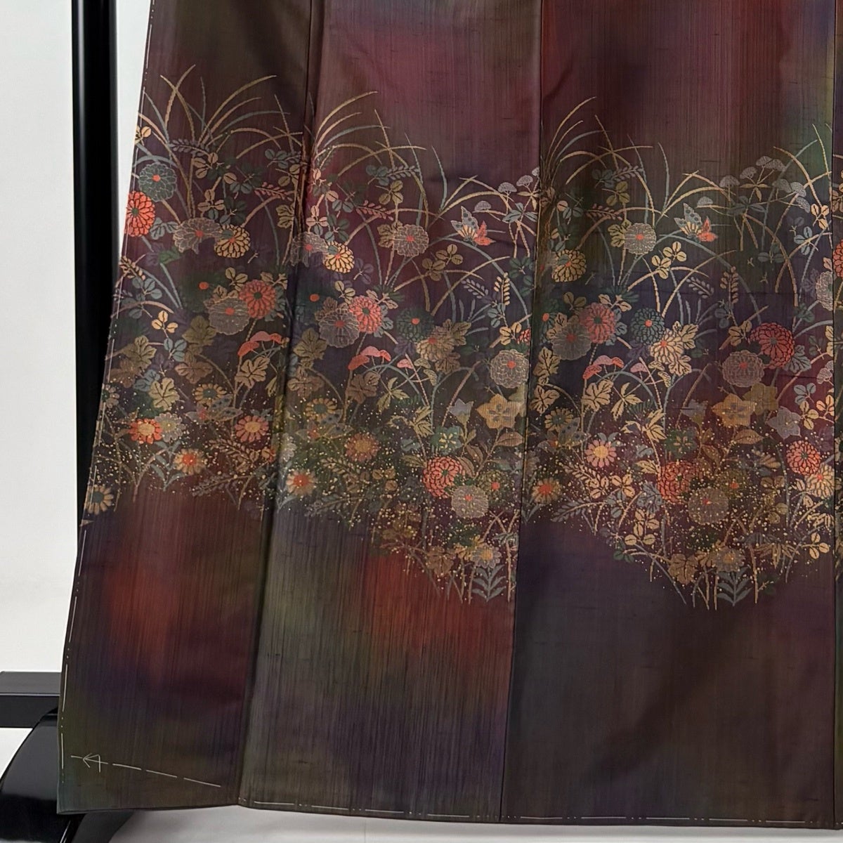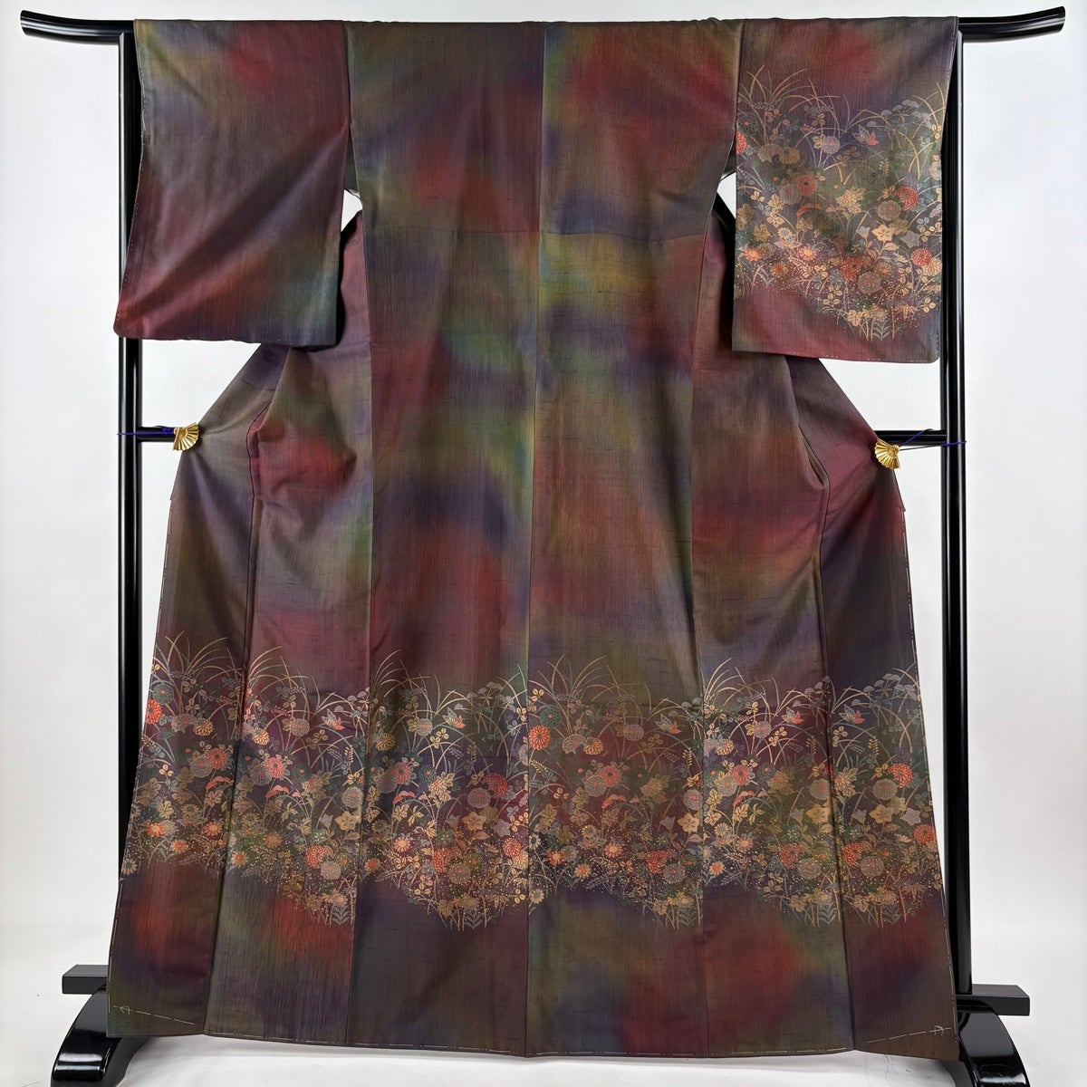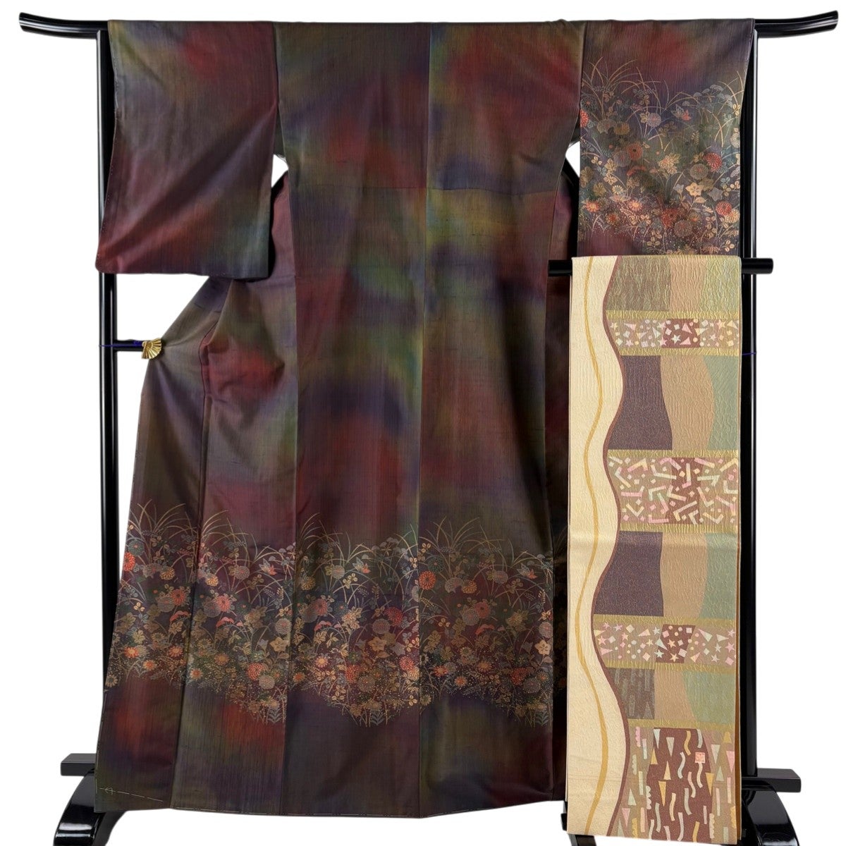 他の画像を見る 30%OFF 【美品】 付下げ 身丈167cm 裄丈65.5cm M 袷 袋帯セット 紬地 秋草 ぼかし柄 赤紫 正絹 名品 K30 当店通常価格 ¥ 33,800 ¥ 23,660 税込