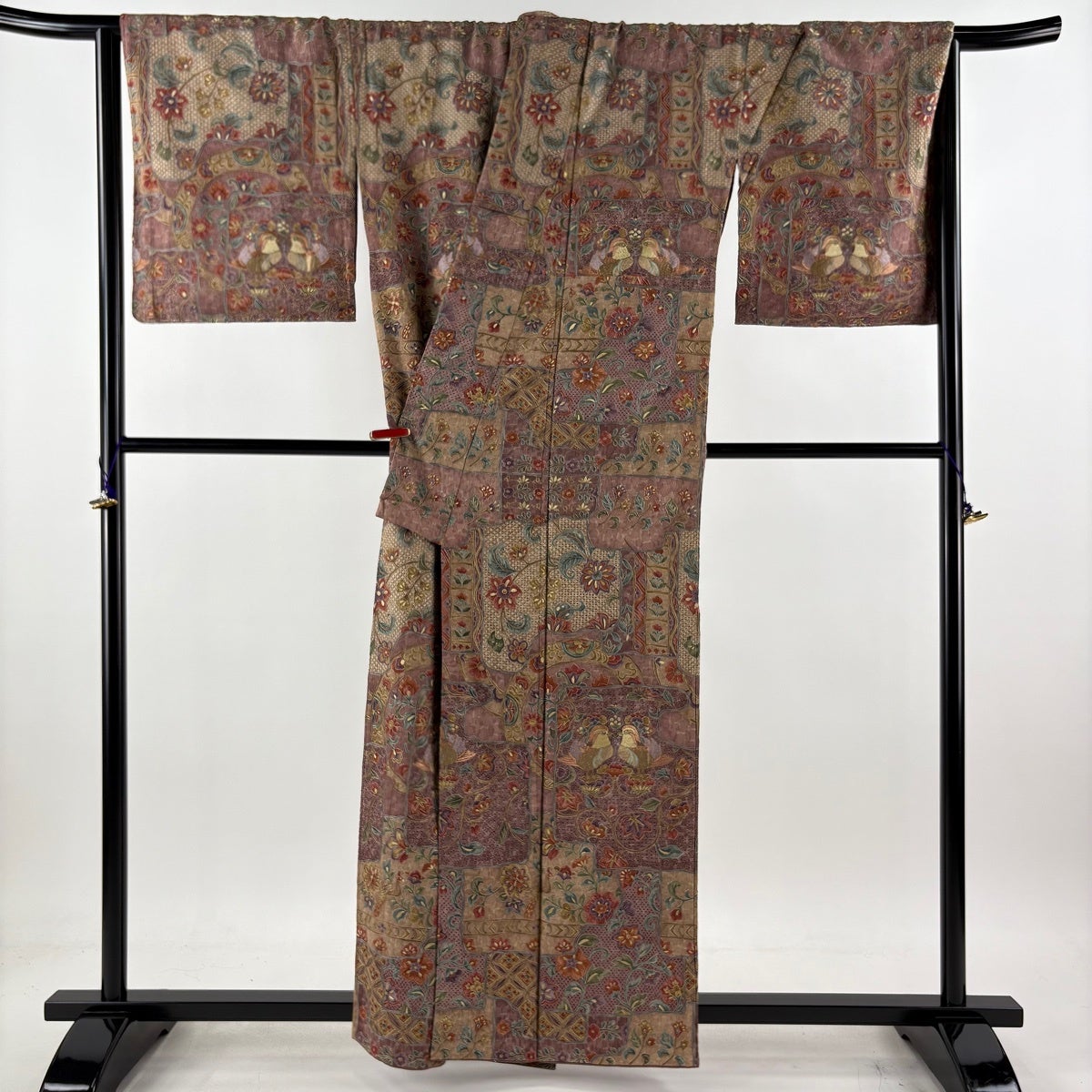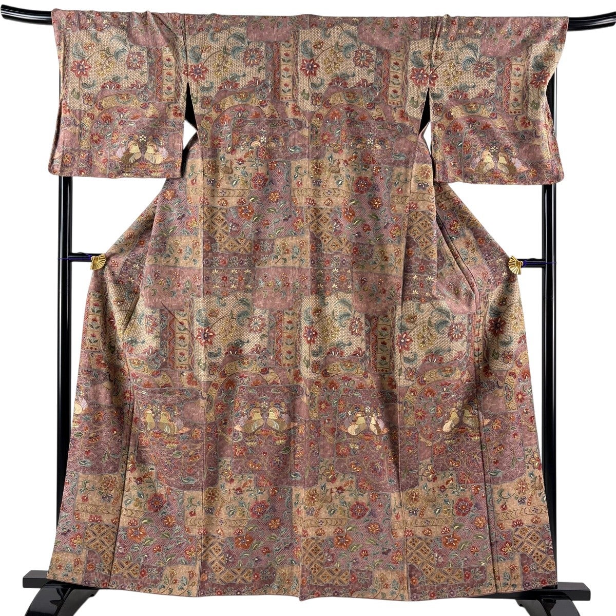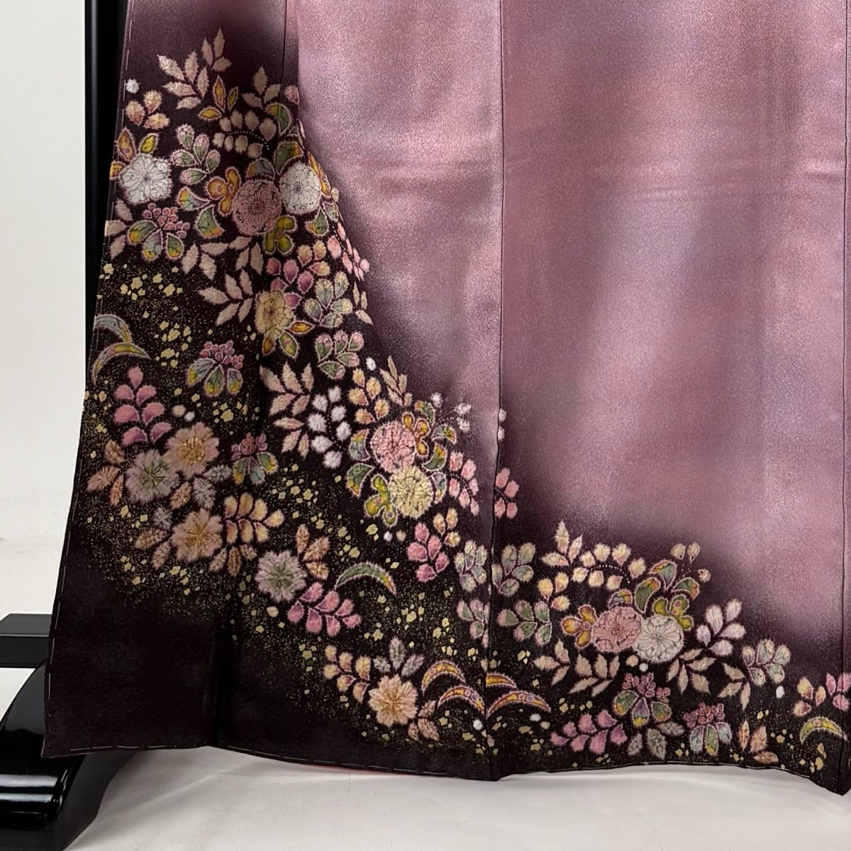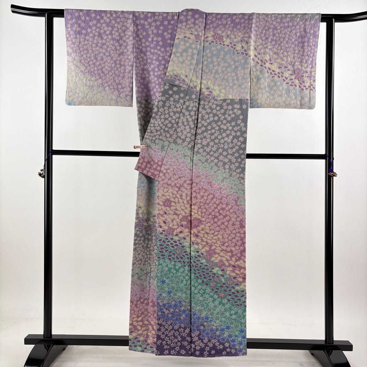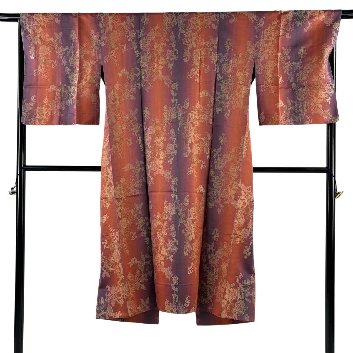 他の画像を見る 30%OFF 【美品】 付下げ 身丈167cm 裄丈65.5cm M 袷 袋帯セット 紬地 秋草 ぼかし柄 赤紫 正絹 名品 K30 当店通常価格 ¥ 33,800 ¥ 23,660 税込
