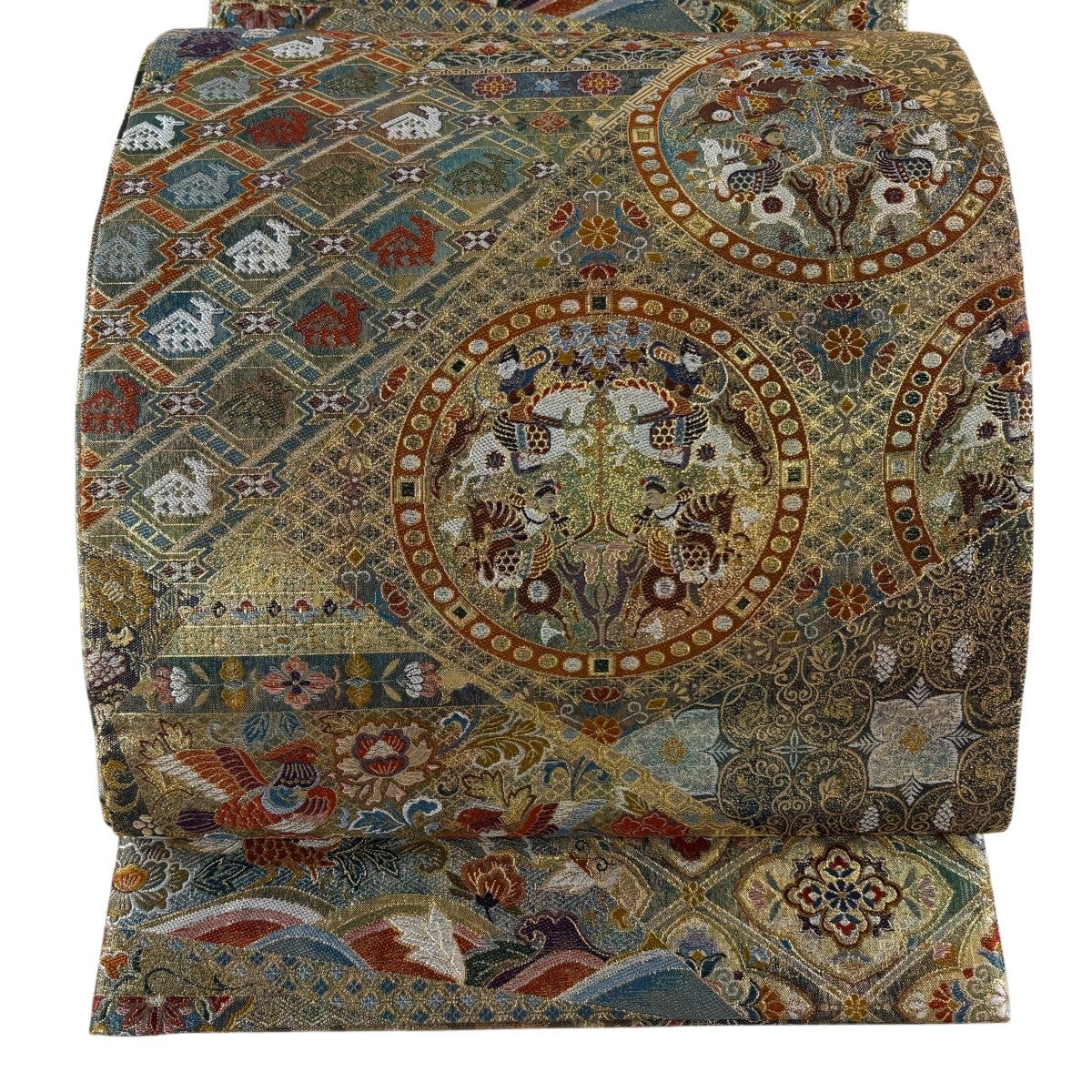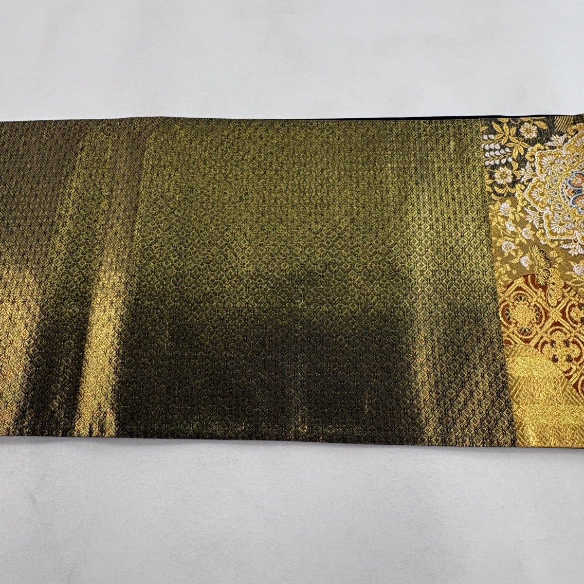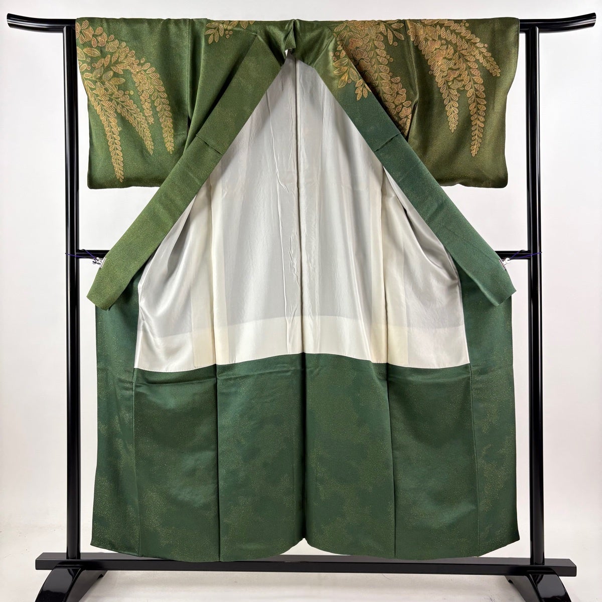 他の画像を見る 30%OFF 【美品】 付下げ 身丈153cm 裄丈65cm M 袷 袋帯セット 太田洋 落款あり 葡萄唐草 波 金銀彩 ぼかし 抹茶色 正絹 名品 K30 当店通常価格 ¥ 33,800 ¥ 23,660 税込