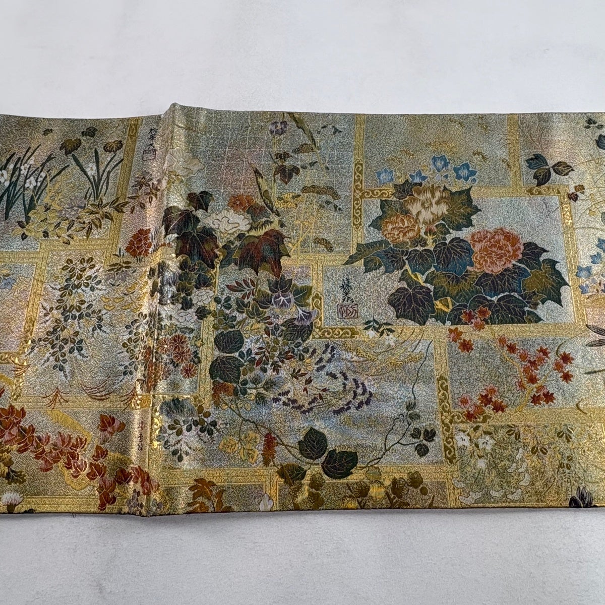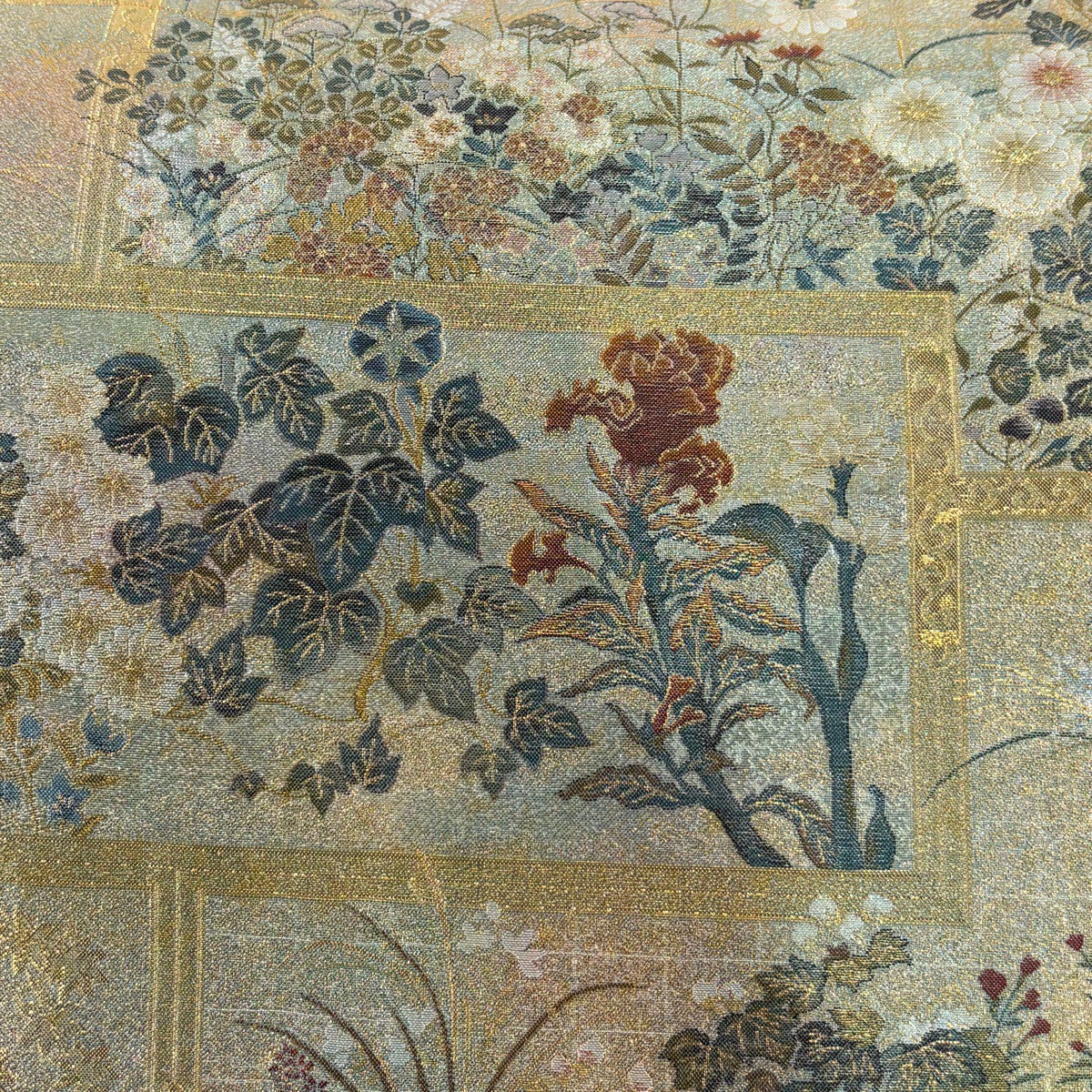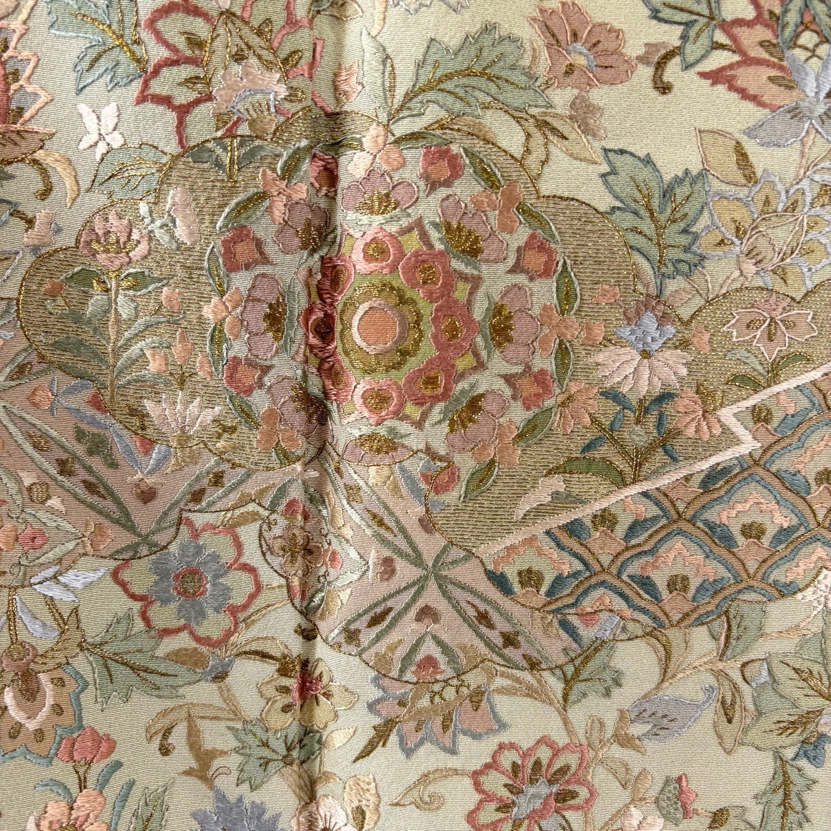 他の画像を見る 30%OFF 【美品】 付下げ 身丈153cm 裄丈65cm M 袷 袋帯セット 太田洋 落款あり 葡萄唐草 波 金銀彩 ぼかし 抹茶色 正絹 名品 K30 当店通常価格 ¥ 33,800 ¥ 23,660 税込