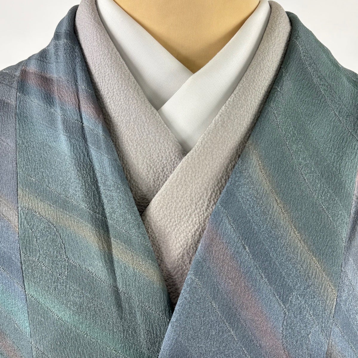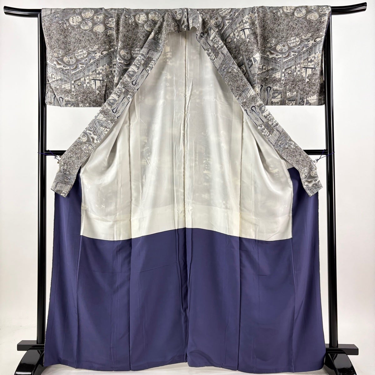 他の画像を見る 30%OFF 訪問着 身丈165cm 裄丈64cm M 袷 川村久太郎 袋帯セット 紬地 落款あり 流水 青灰色 正絹 名品 K30 当店通常価格 ¥ 33,800 ¥ 23,660 税込