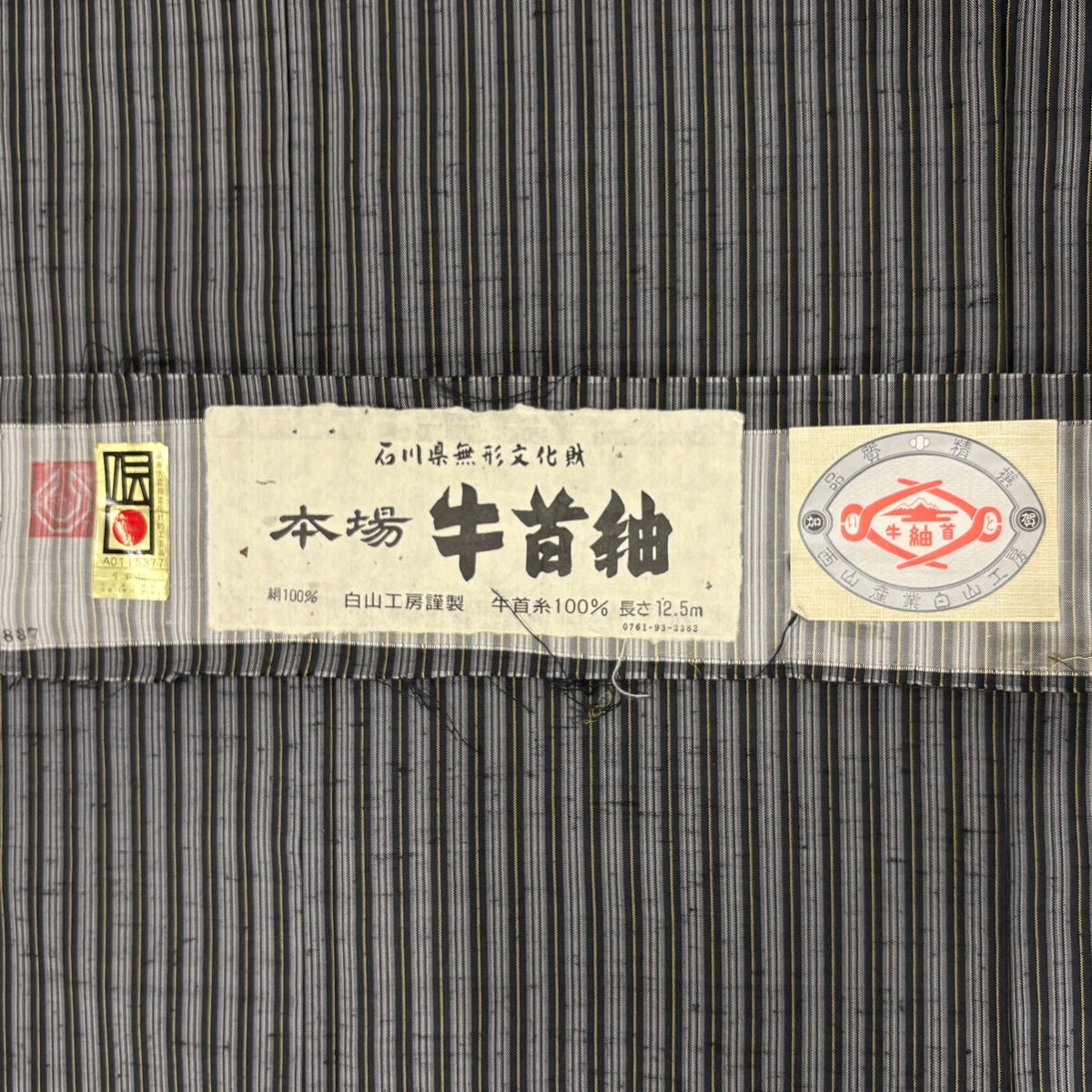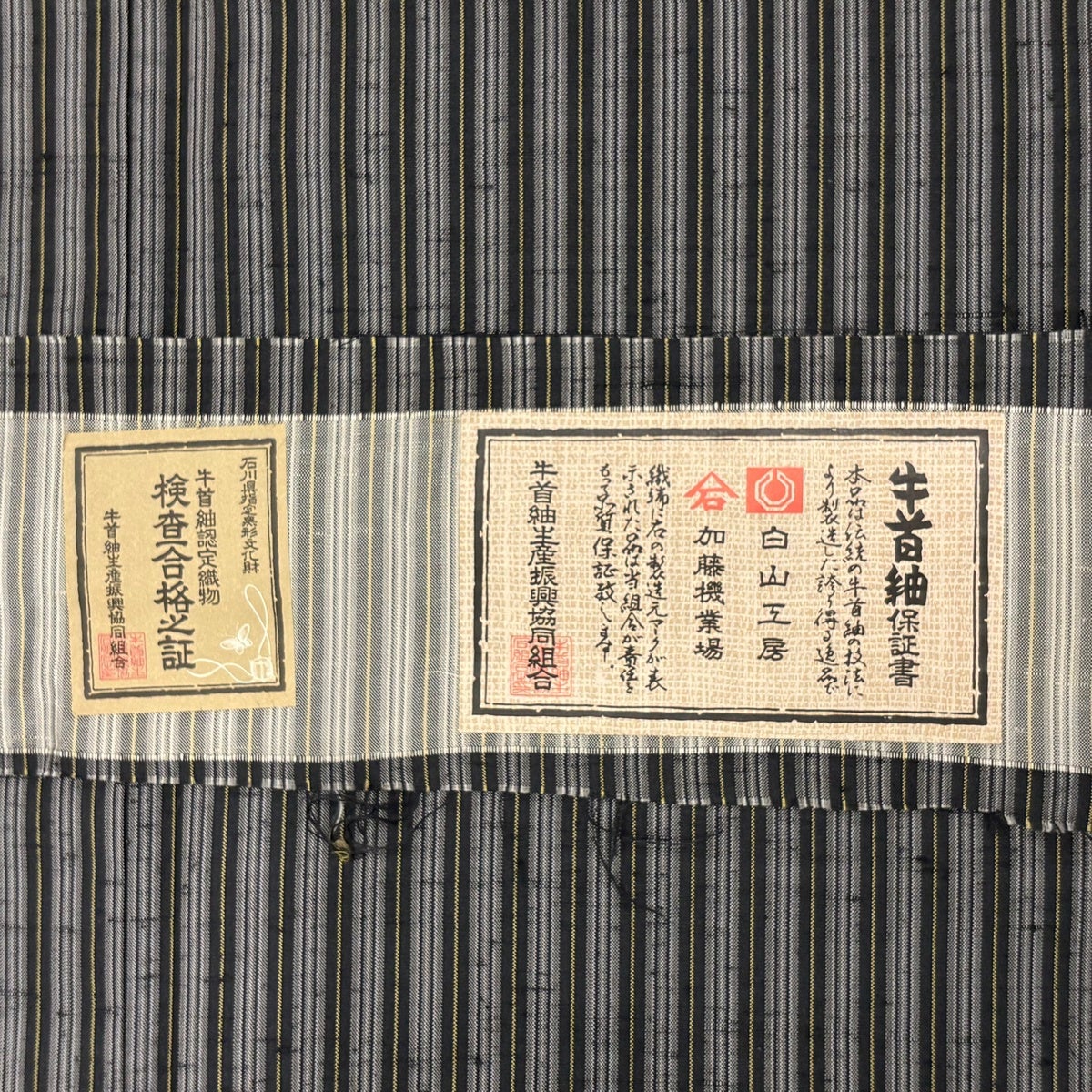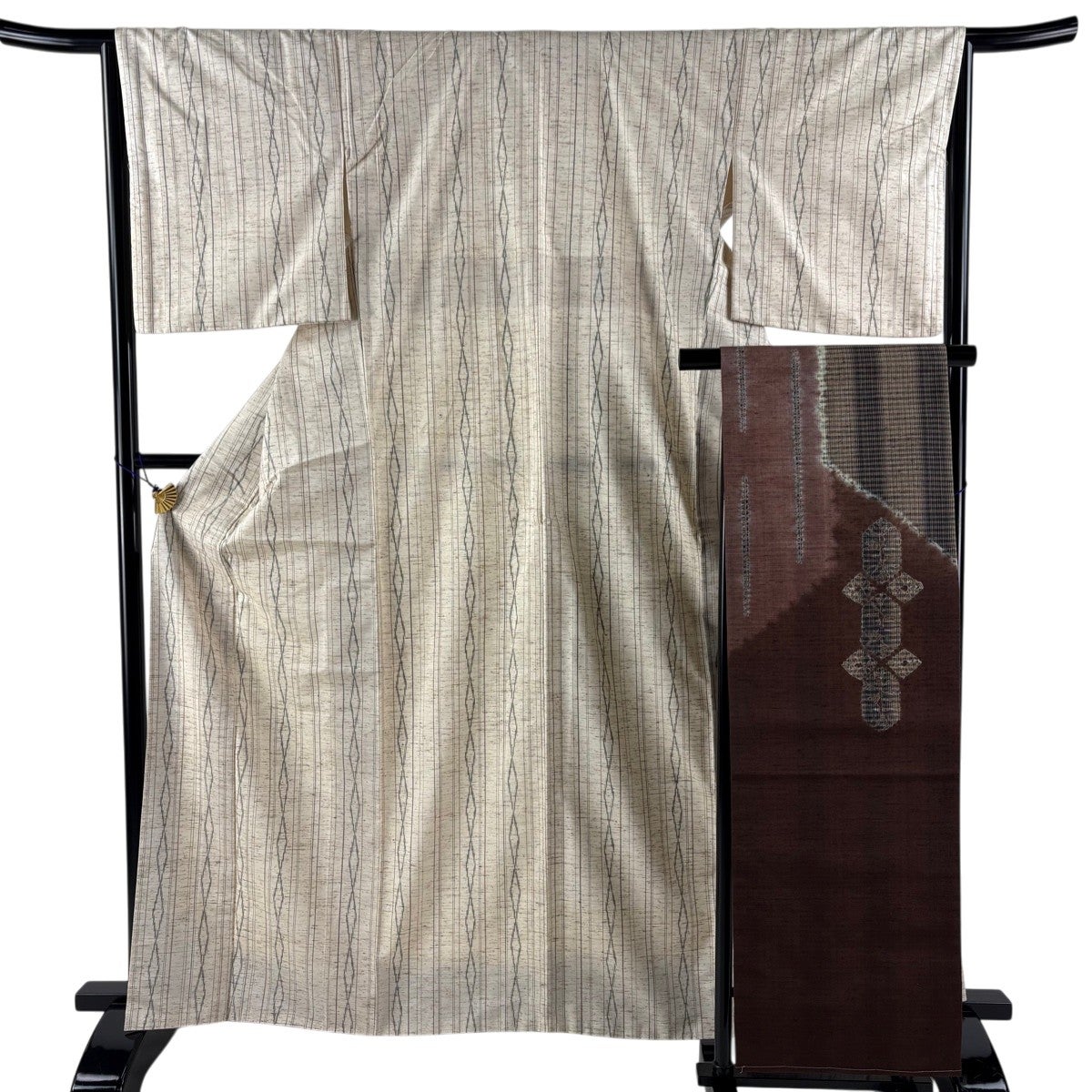 他の画像を見る 30%OFF 【美品】 大島紬 身丈166cm 裄丈66.5cm M 袷 名古屋帯セット 純泥染 証紙あり 麻の葉 笹 灰茶 正絹 名品 K30 当店通常価格 ¥ 33,800 ¥ 23,660 税込