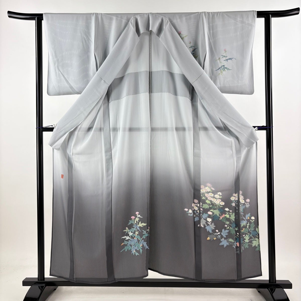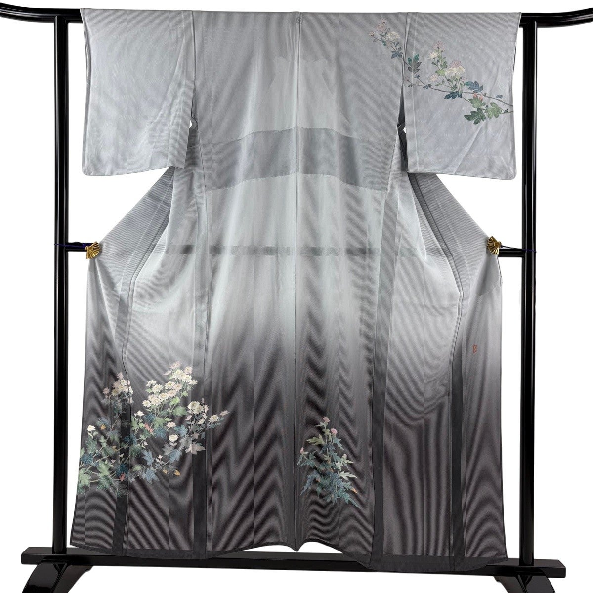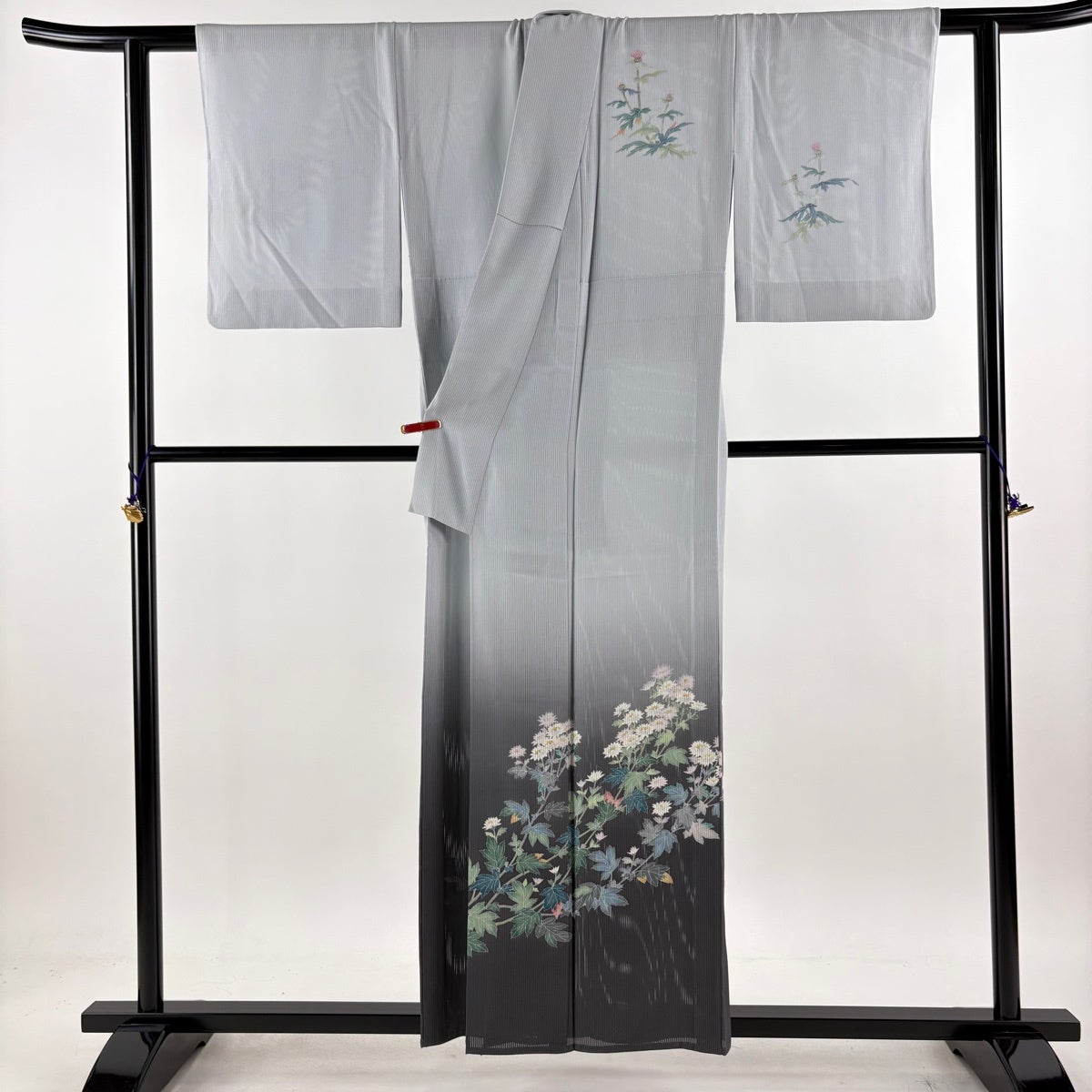 他の画像を見る 30%OFF 【美品】 付下げ 身丈166cm 裄丈66cm M 袷 袋帯セット 紬地 林淳一 落款あり 山並み 草花 金糸 金彩 黒灰 正絹 名品 K30 当店通常価格 ¥ 33,800 ¥ 23,660 税込