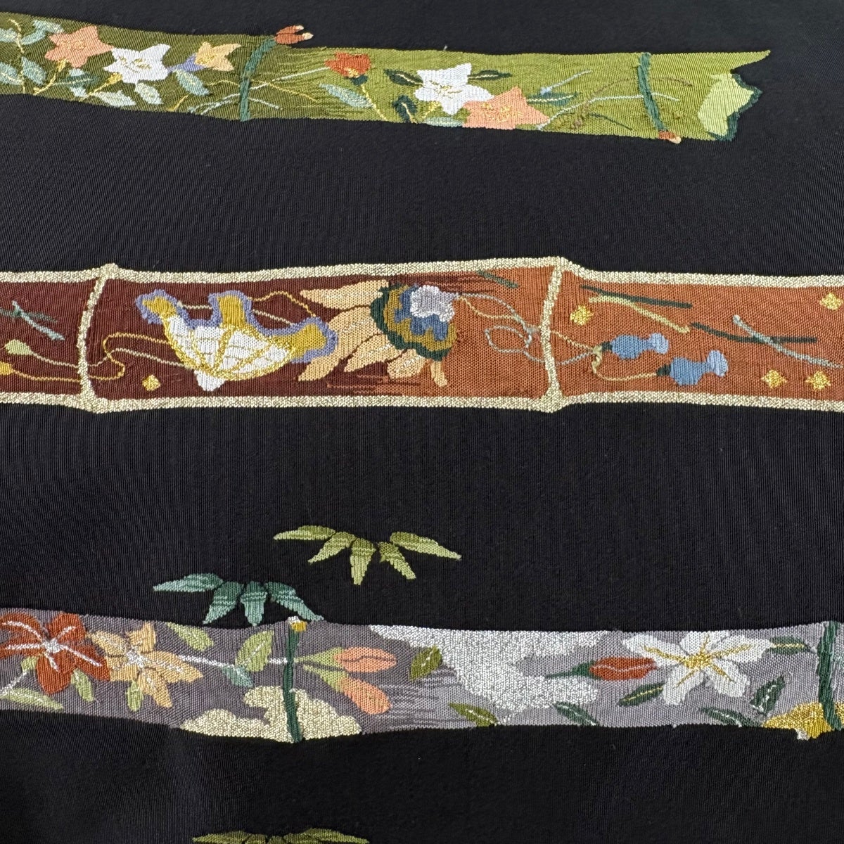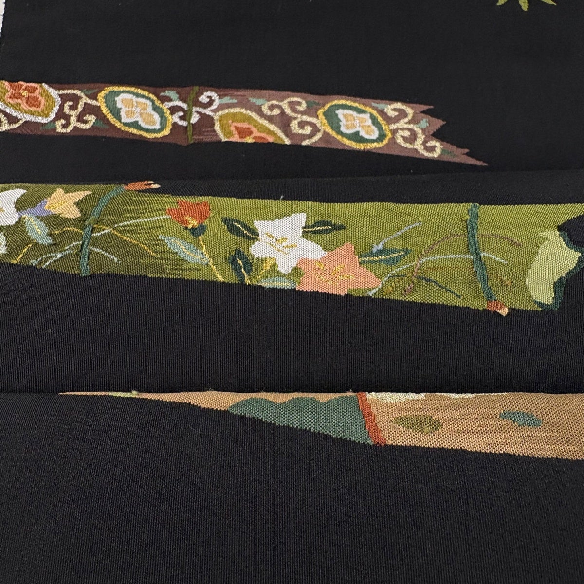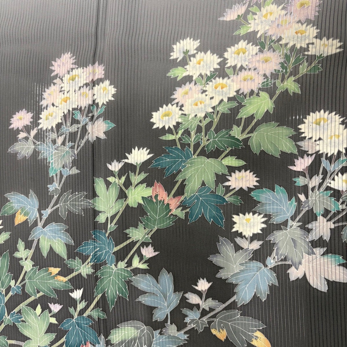他の画像を見る 30%OFF 【美品】 付下げ 身丈166cm 裄丈66cm M 袷 袋帯セット 紬地 林淳一 落款あり 山並み 草花 金糸 金彩 黒灰 正絹 名品 K30 当店通常価格 ¥ 33,800 ¥ 23,660 税込