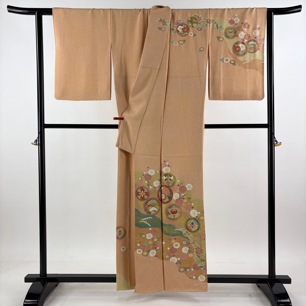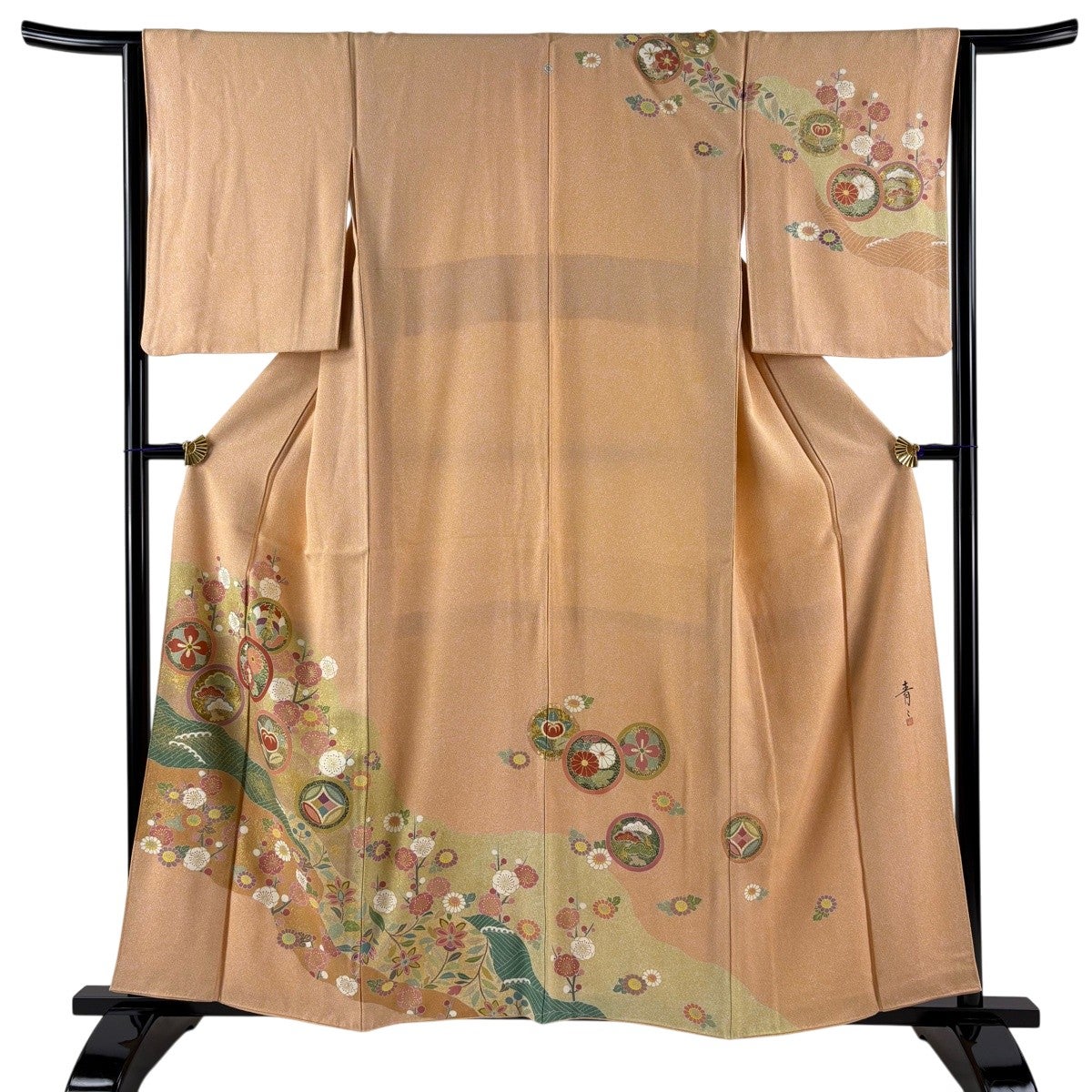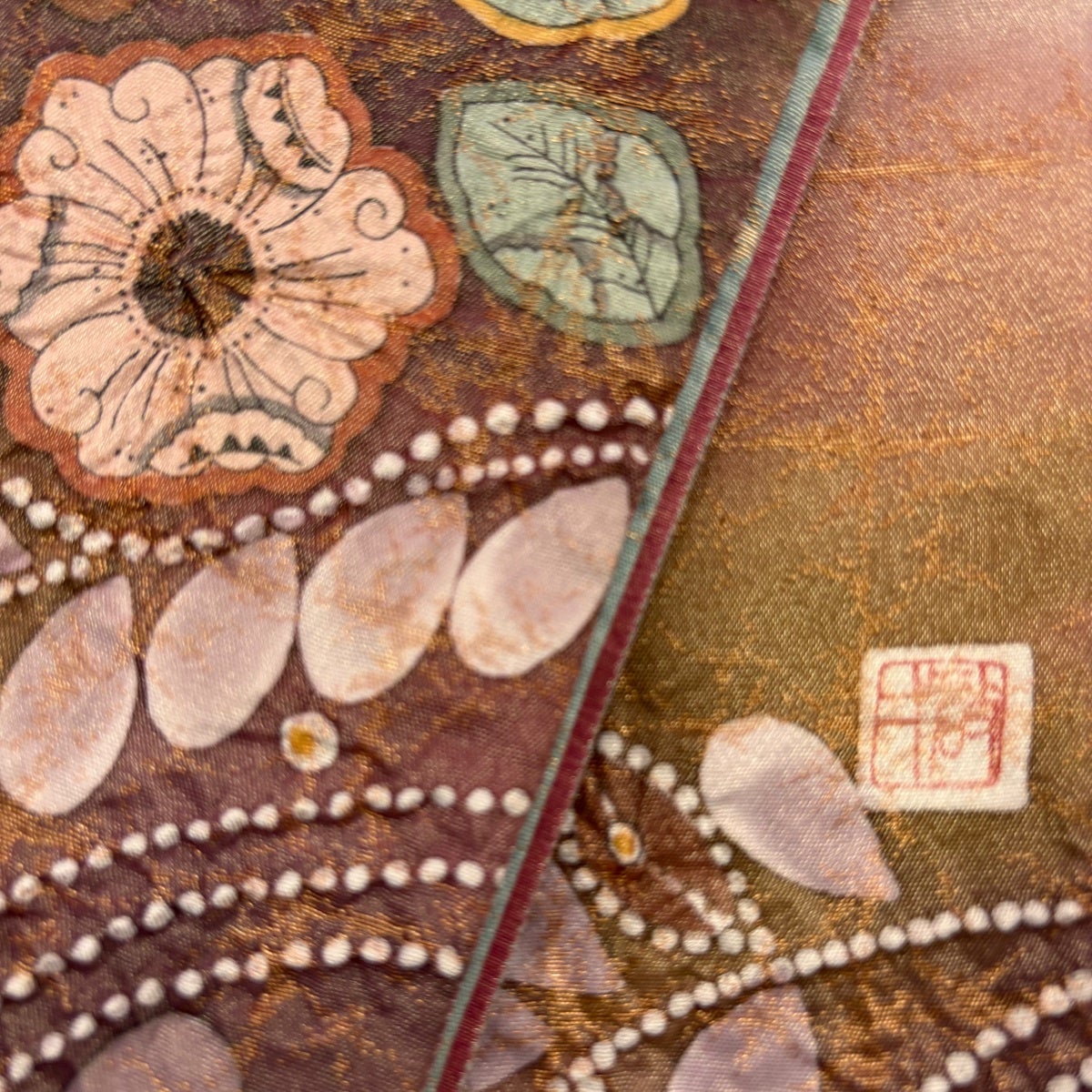 他の画像を見る 30%OFF 訪問着 身丈164cm 裄丈66cm M 袷 袋帯セット 落款あり 辻が花 金彩 ぼかし 山吹茶色 正絹 名品 K30 当店通常価格 ¥ 33,800 ¥ 23,660 税込