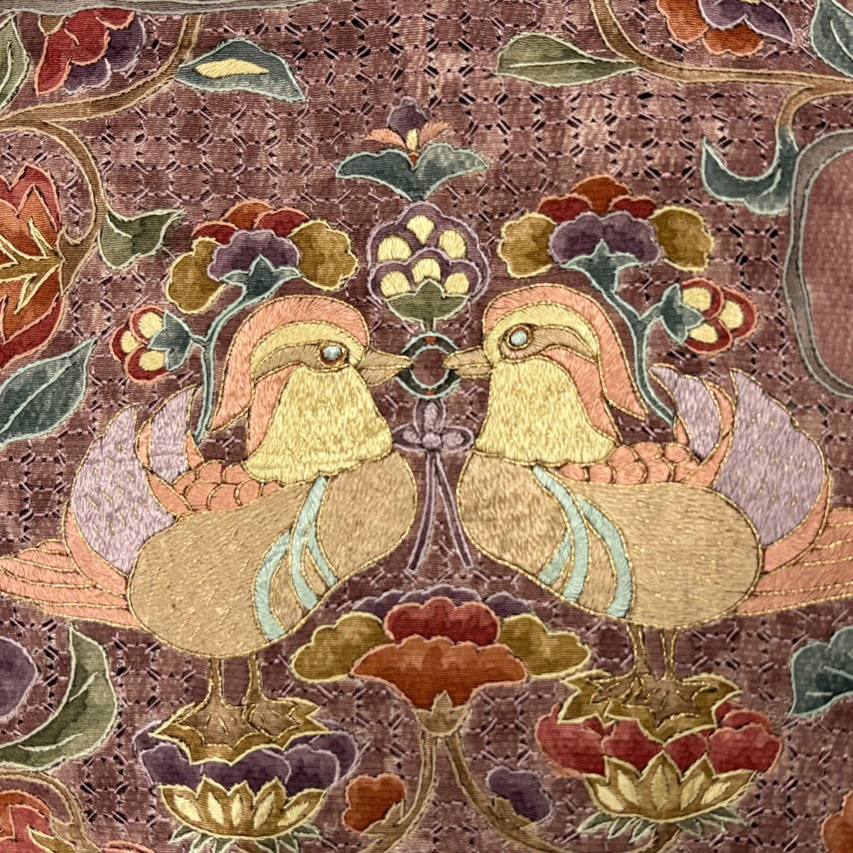 他の画像を見る 30%OFF 【美品】 訪問着 身丈159cm 裄丈66cm M 袷 袋帯セット 辻が花柄 刺繍 金糸 紫 正絹 名品 一つ紋 K30 当店通常価格 ¥ 33,800 ¥ 23,660 税込