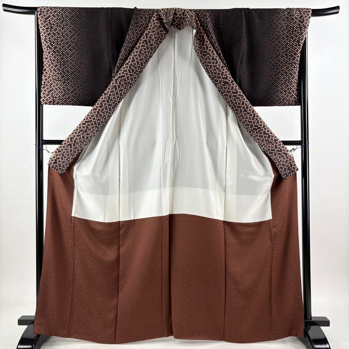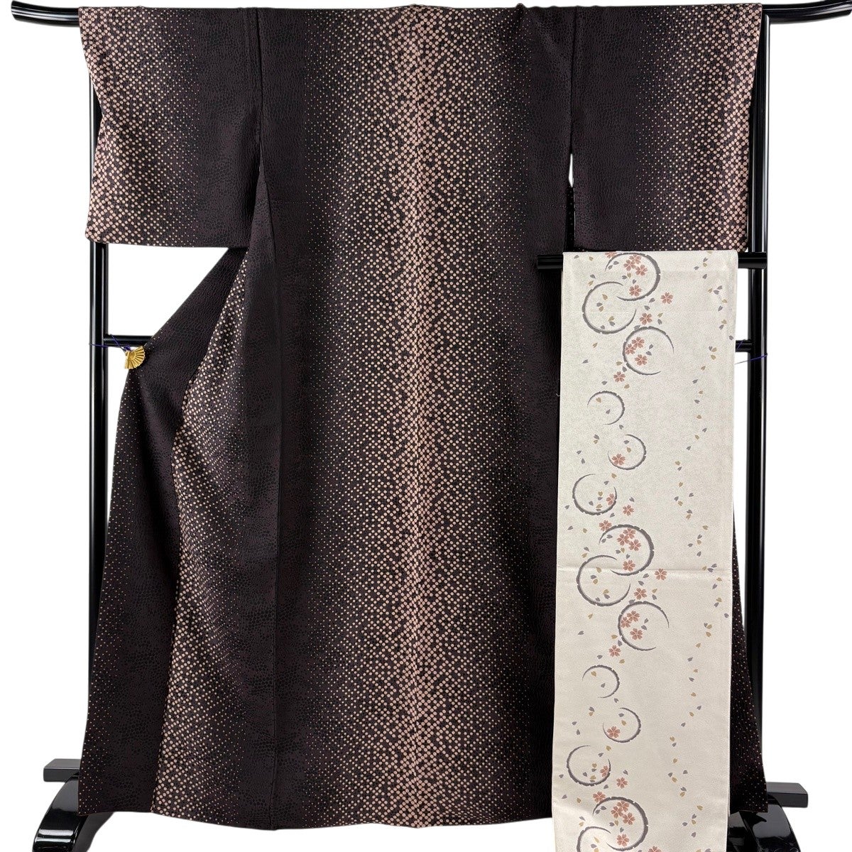他の画像を見る 30%OFF 小紋 身丈165.5cm 裄丈66cm M 袷 斉藤三才 袋帯セット 落款あり 幾何学模様 焦茶色 正絹 名品 K30 当店通常価格 ¥ 33,800 ¥ 23,660 税込