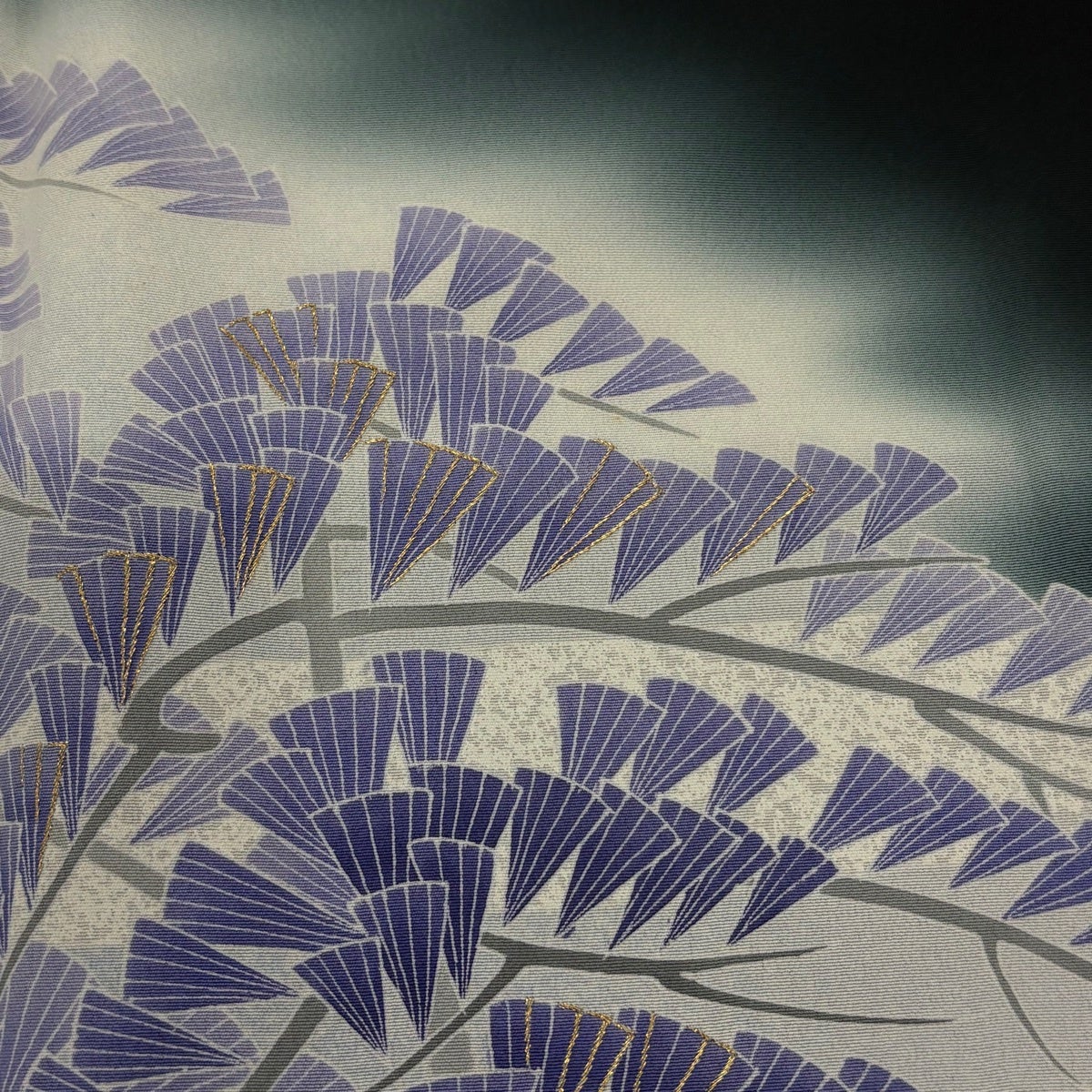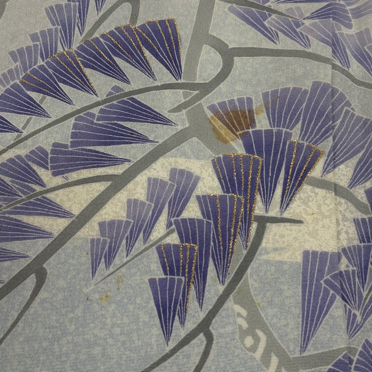 付下げ 身丈167.5cm 裄丈65cm M 袷 麻の葉 霞 灰色 正絹 秀品