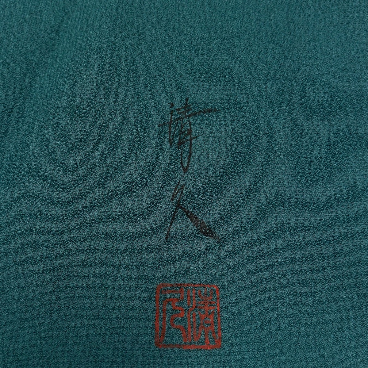 付下げ 身丈158cm 裄丈62.5cm S 袷 松尾光琳 落款あり 扇面流し 文字紋 銀彩 薄緑 正絹 秀品