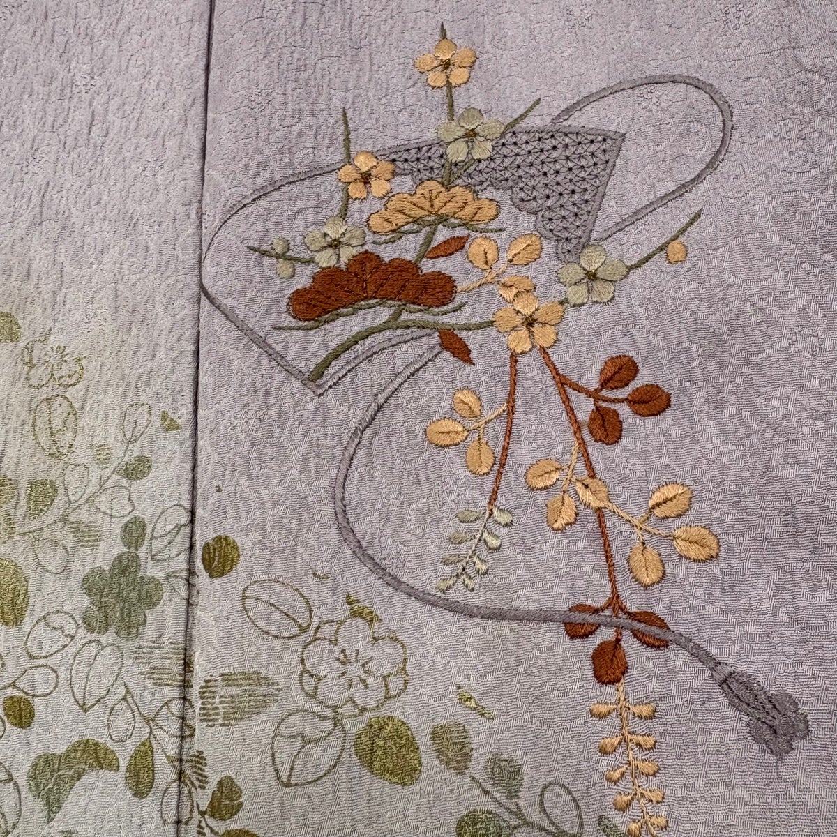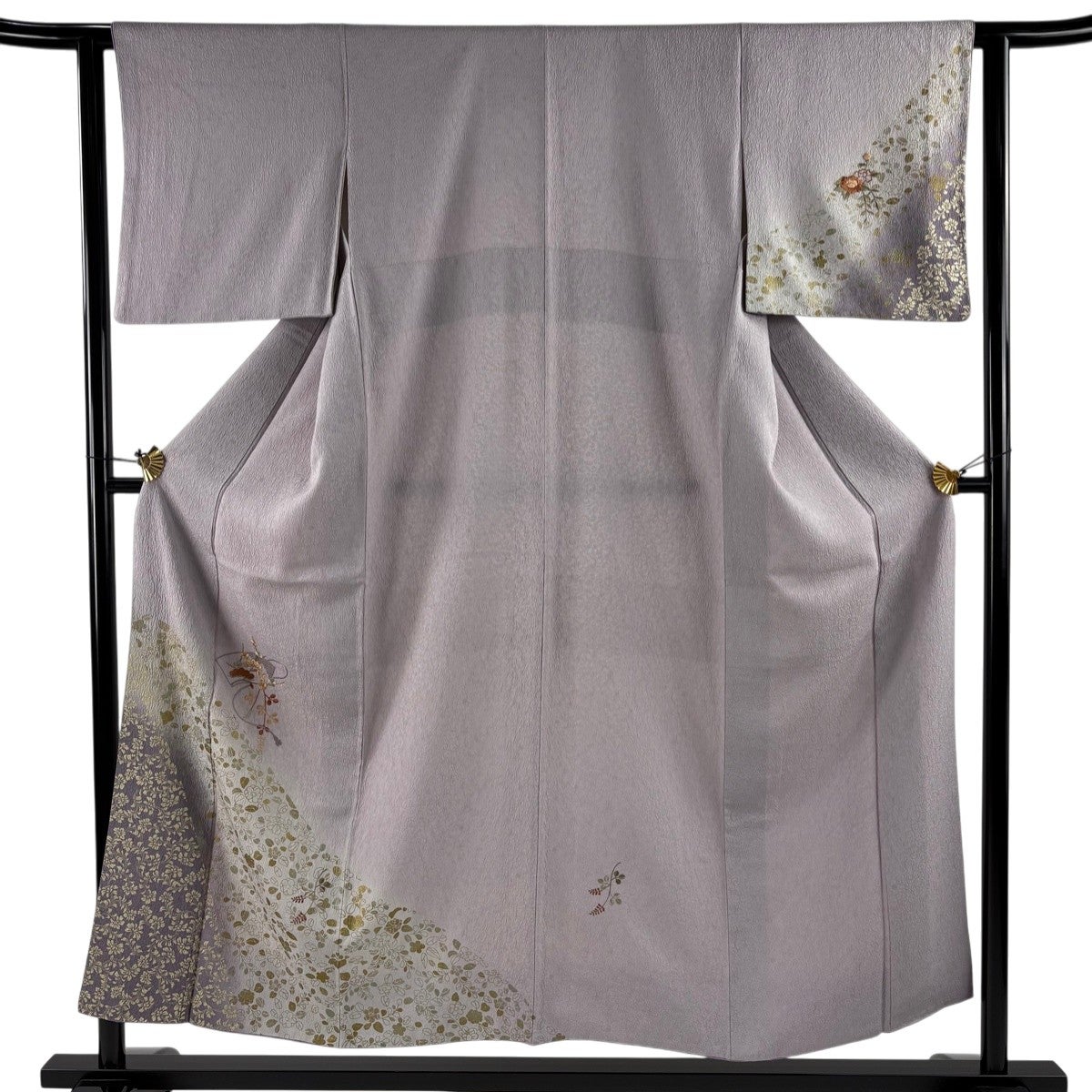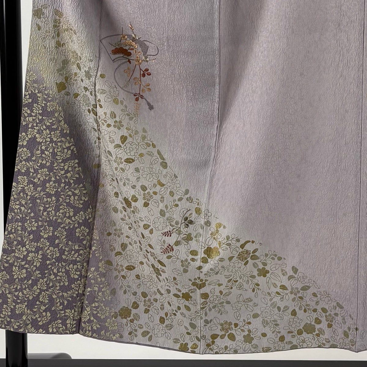 付下げ 身丈151cm 裄丈63cm S 袷 花唐草 地紋 相良刺繍 灰紫 正絹 秀品 一つ紋