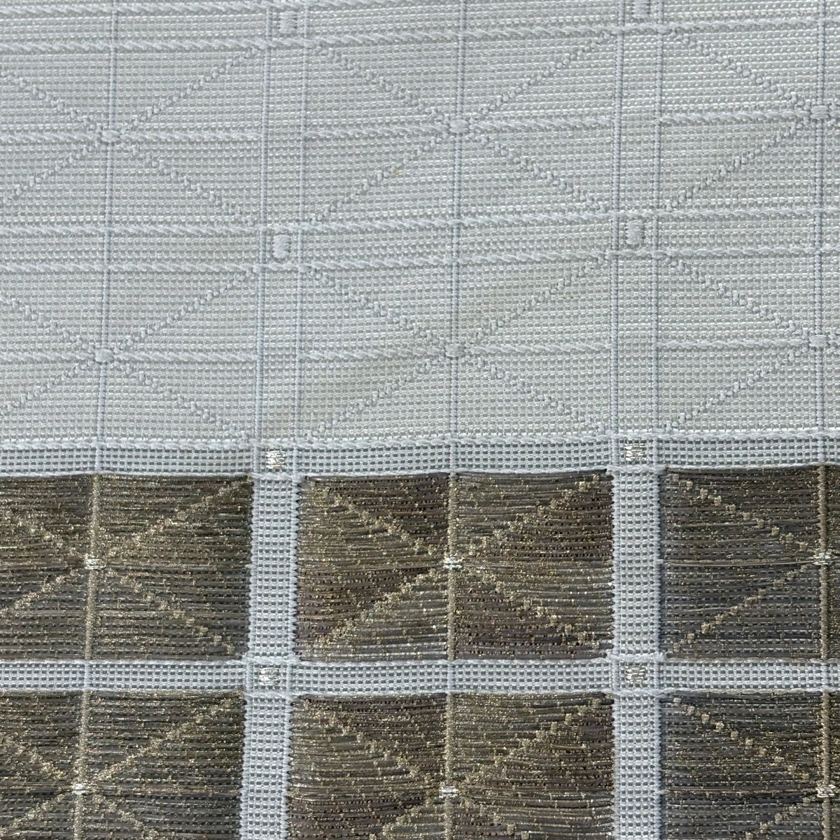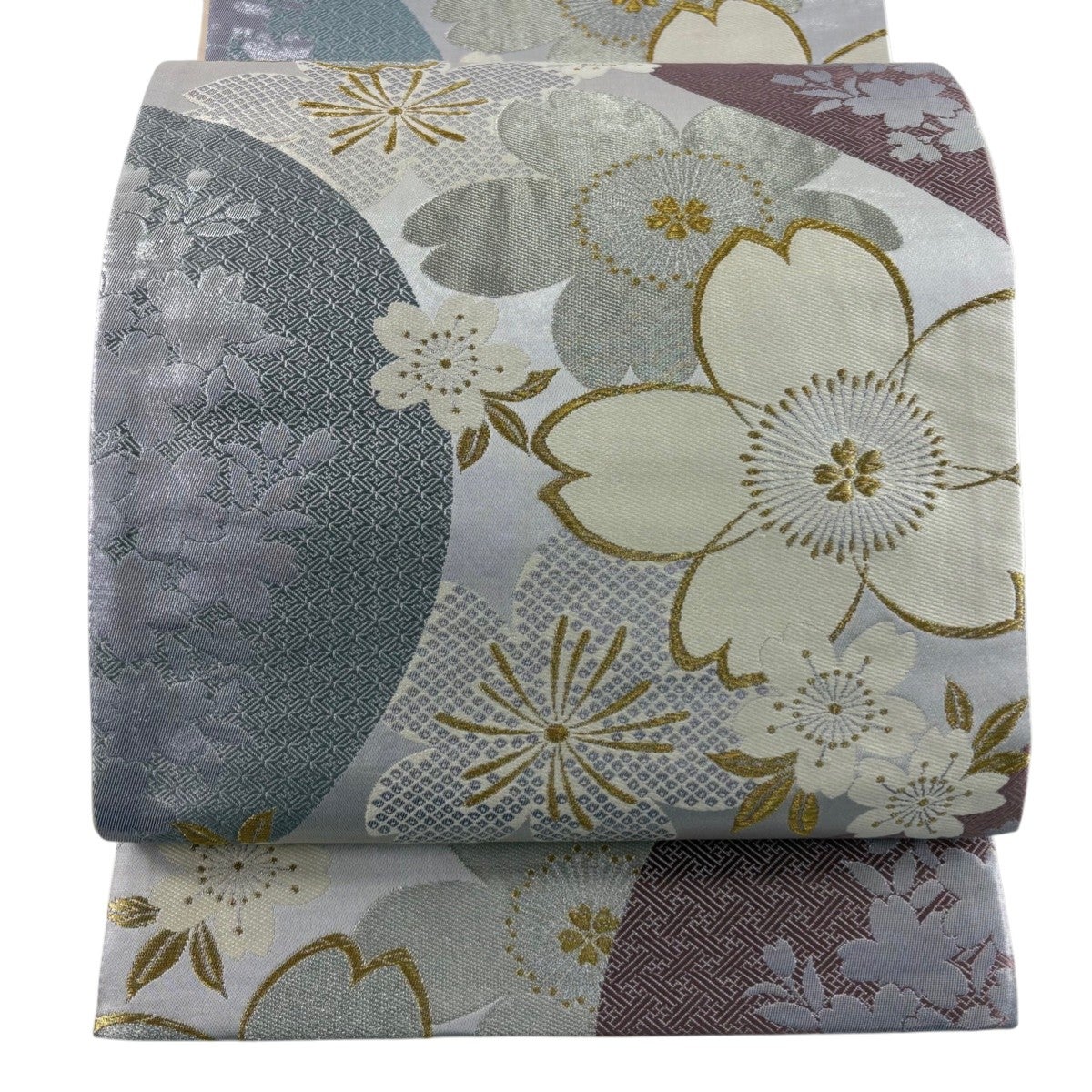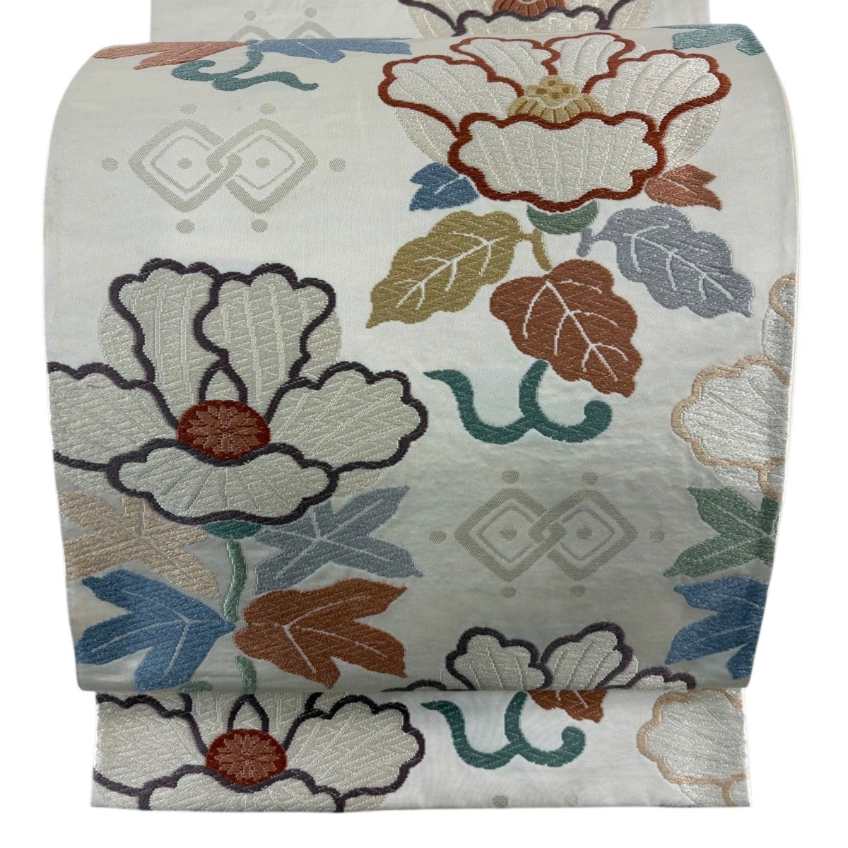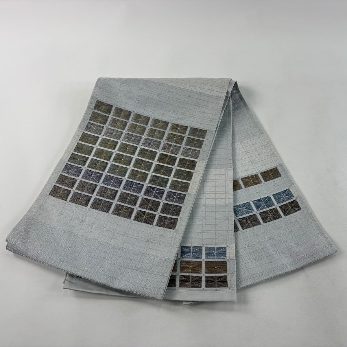 袋帯 秀品 幾何学 灰白 お太鼓柄 正絹