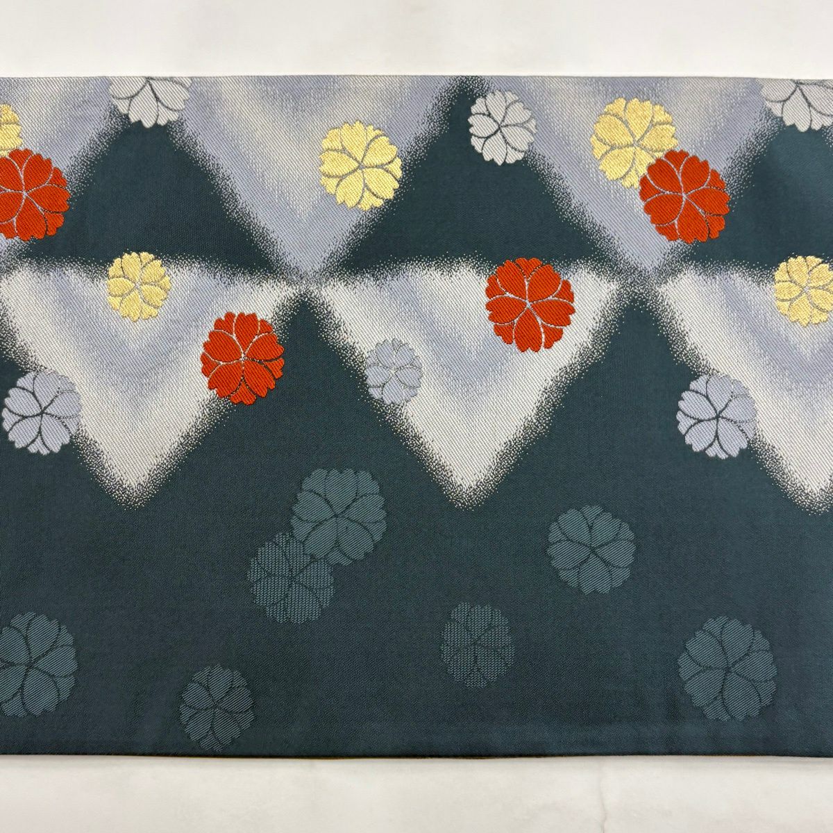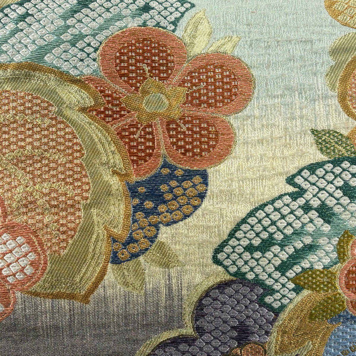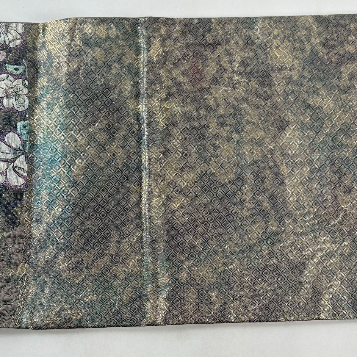 50%OFF 【美品】 袋帯 秀品 花 幾何学 金糸 緑 全通 正絹 K50