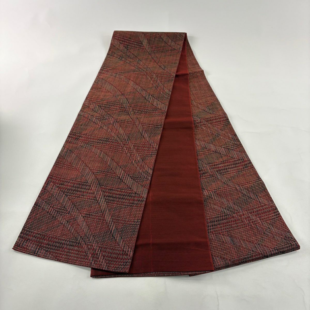 50%OFF 【美品】 袋帯 秀品 幾何学 金糸 えんじ色 六通 正絹 K50