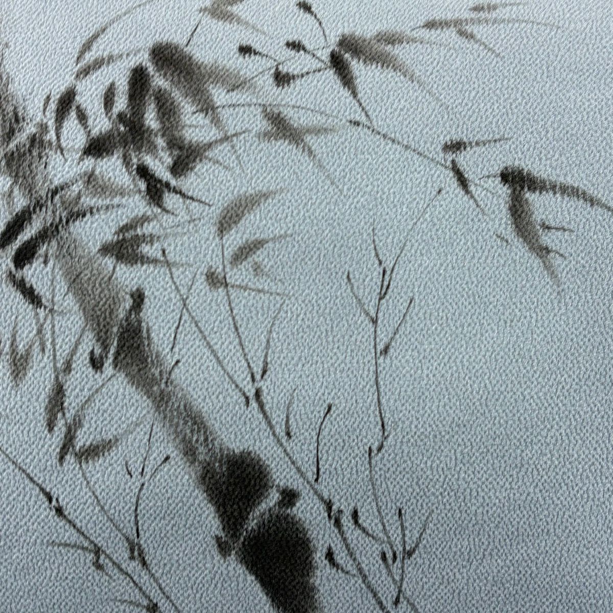 50%OFF 名古屋帯 秀品 落款あり 翠峰 笹 縮緬 青灰色 正絹 K50