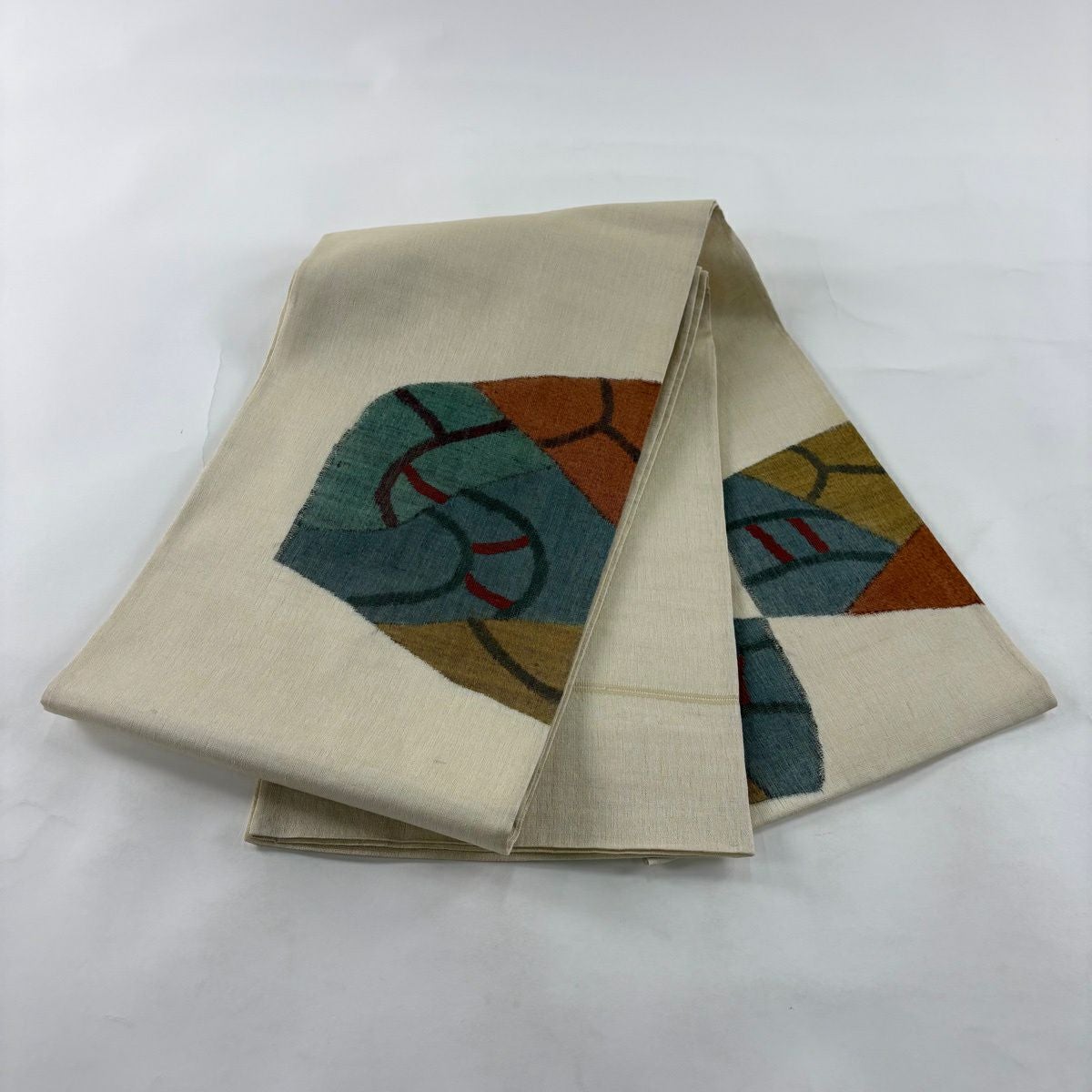 50%OFF 【美品】 袋帯 秀品 幾何学 クリーム お太鼓柄 正絹 K50