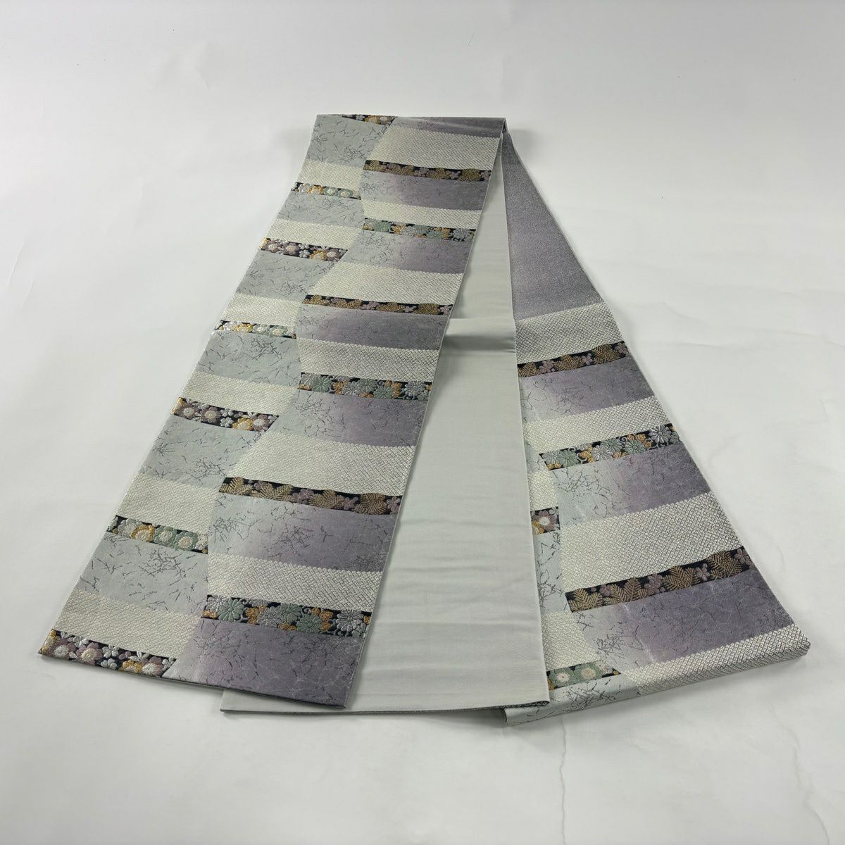 50%OFF 名古屋帯 秀品 松竹梅 流水 金糸 灰紫 正絹 K50