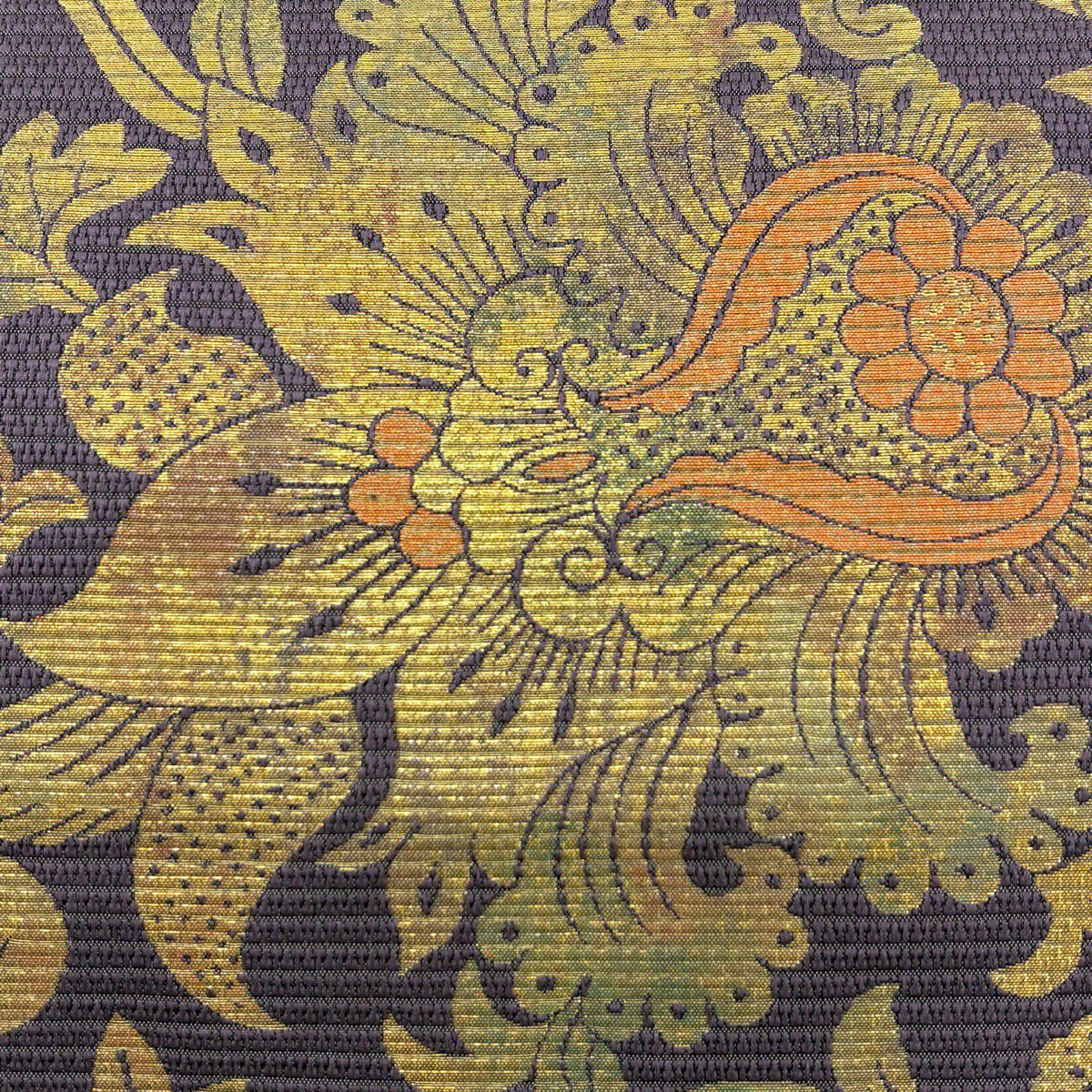 50%OFF 【美品】 袋帯 秀品 草花 更紗 箔 赤紫 お太鼓柄 正絹 K50