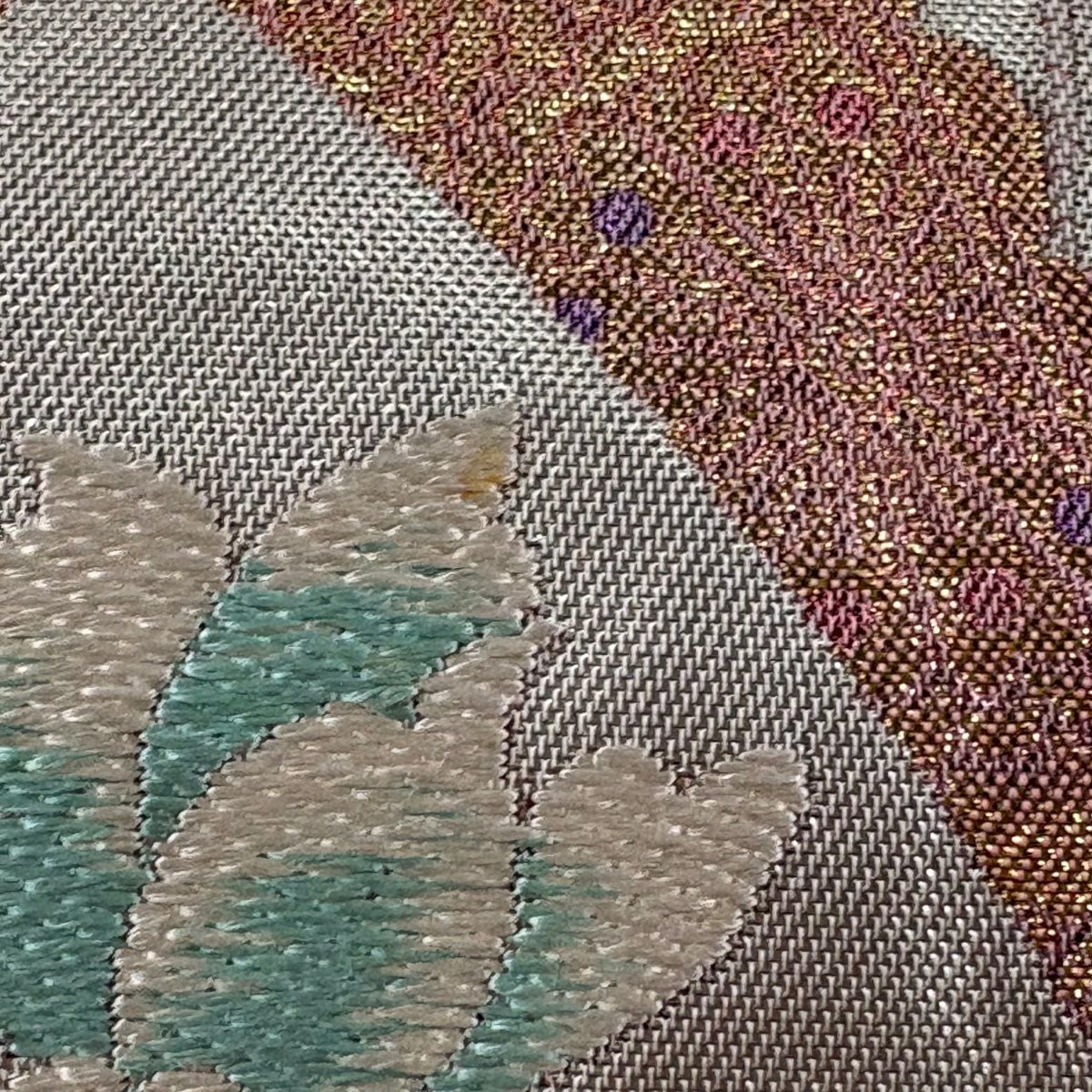 【美品】 袋帯 秀品 落款あり 草花 灰紫 六通 正絹