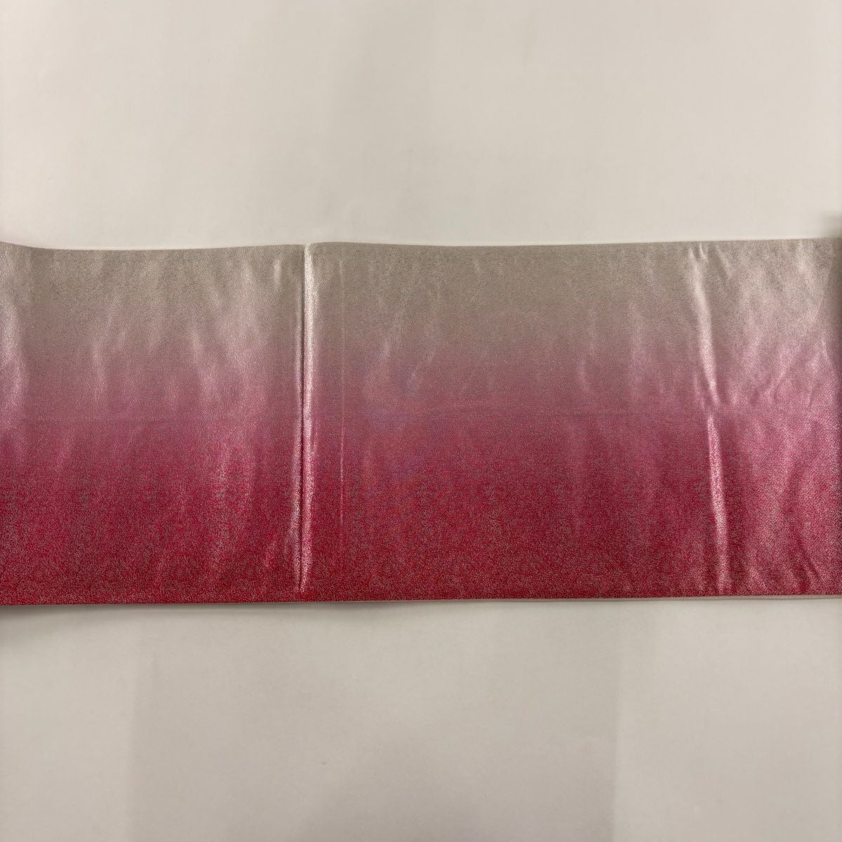 【美品】 袋帯 秀品 献上枝垂桜文 箔 唐織 銀色 六通 正絹