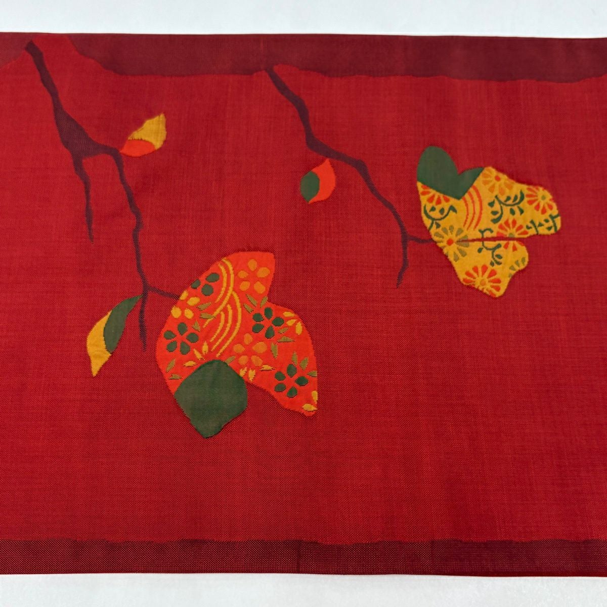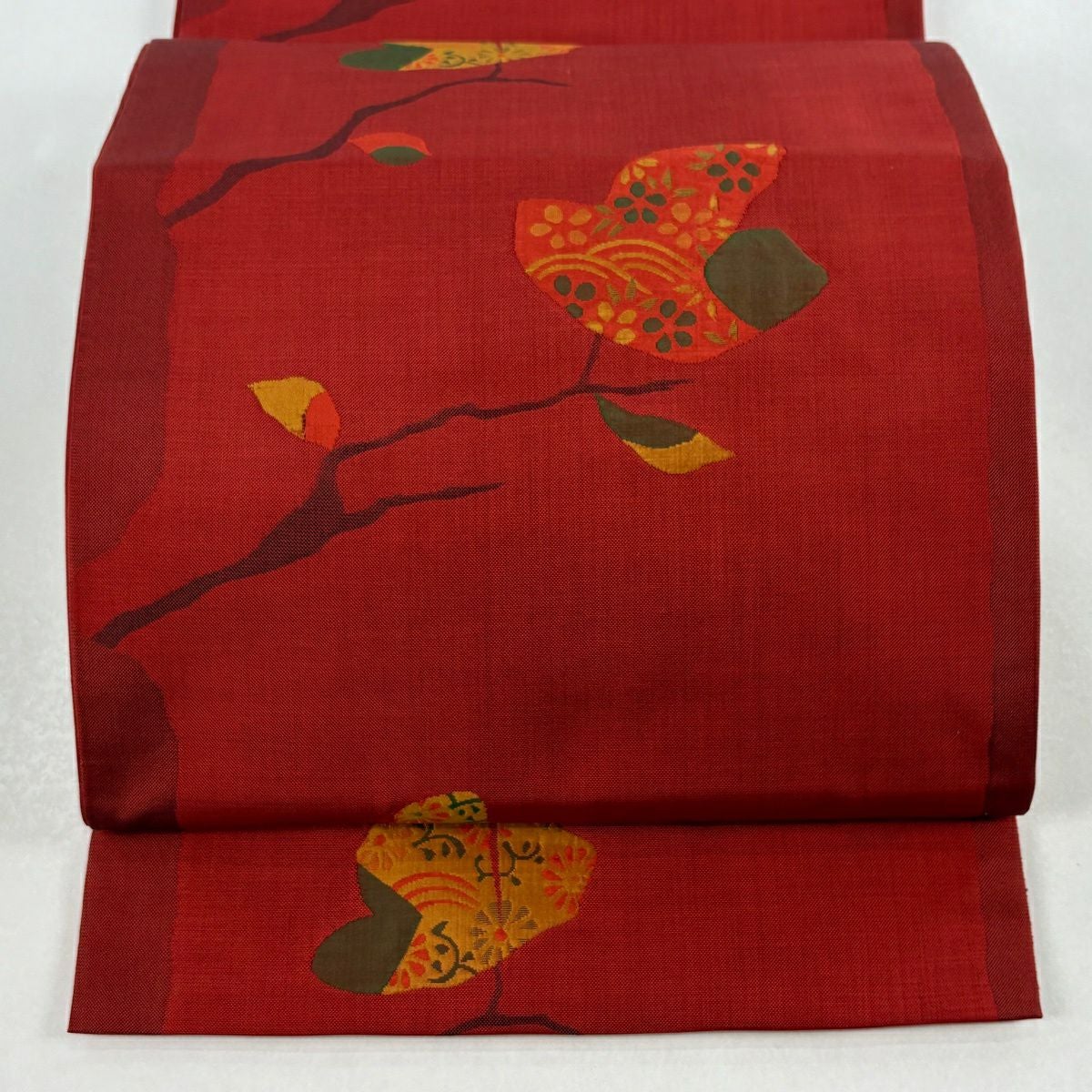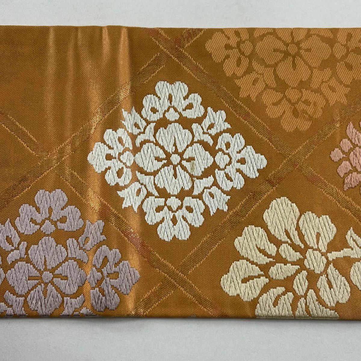 名古屋帯 秀品 華文 鶏頭 箔 オレンジ 正絹