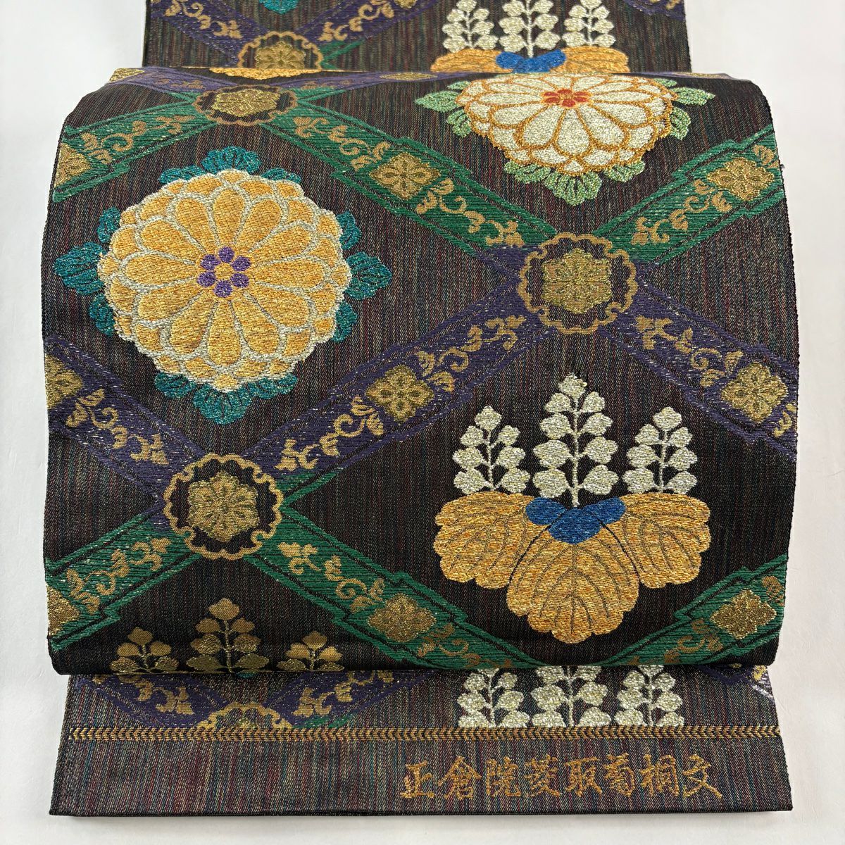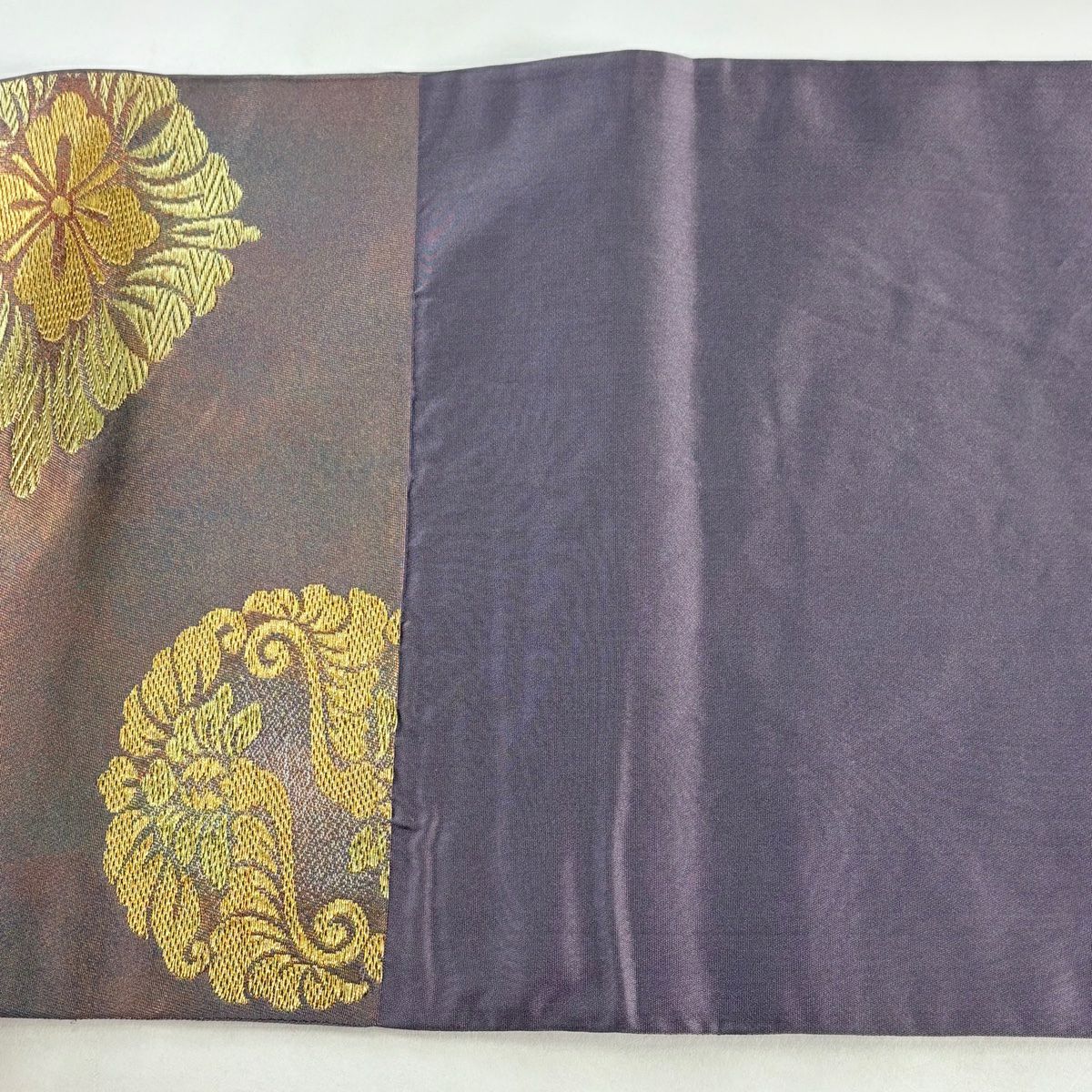 【美品】 袋帯 秀品 華文 花菱 金糸 箔 紫 六通 正絹