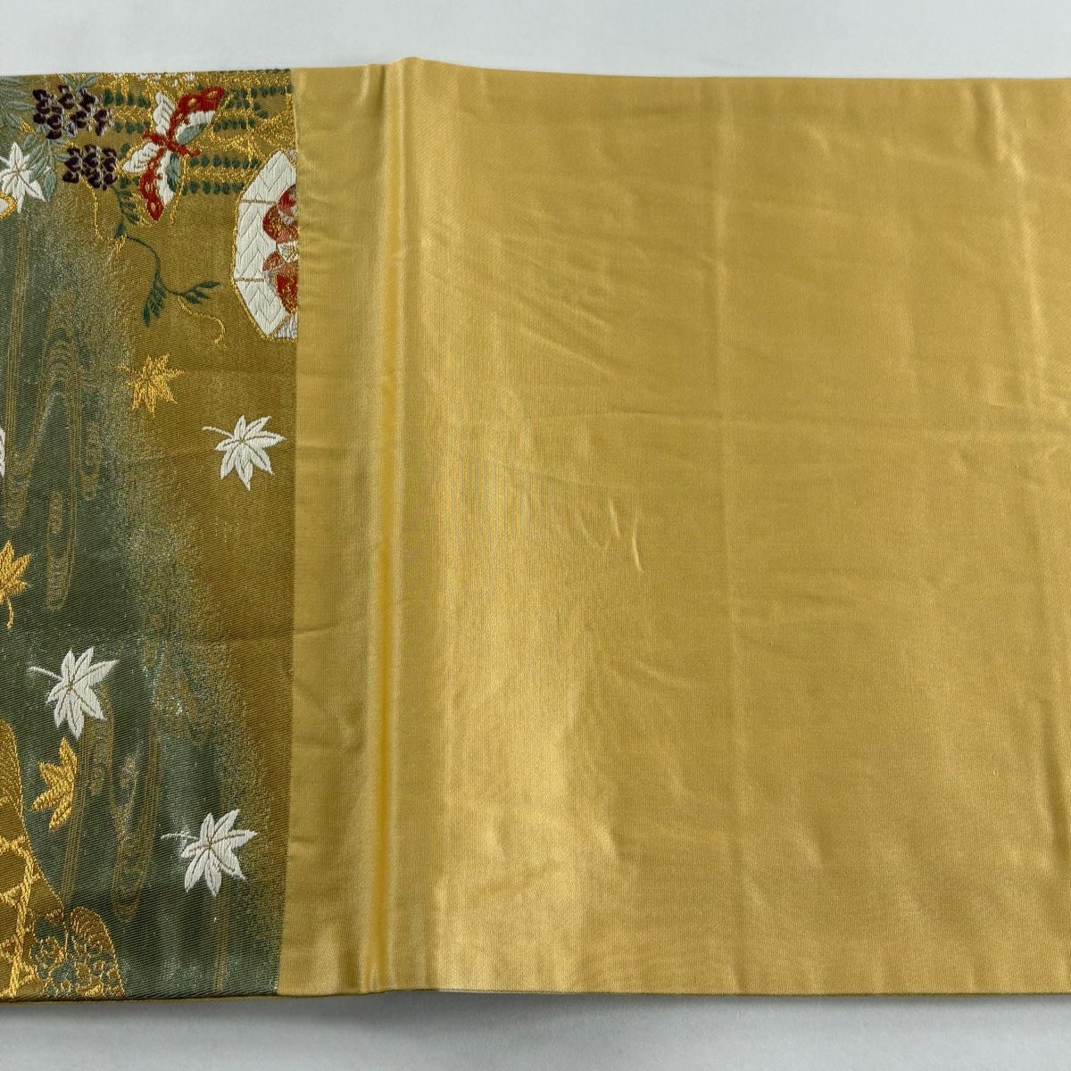 【美品】 袋帯 秀品 霞 金銀糸 灰緑 お太鼓柄 正絹