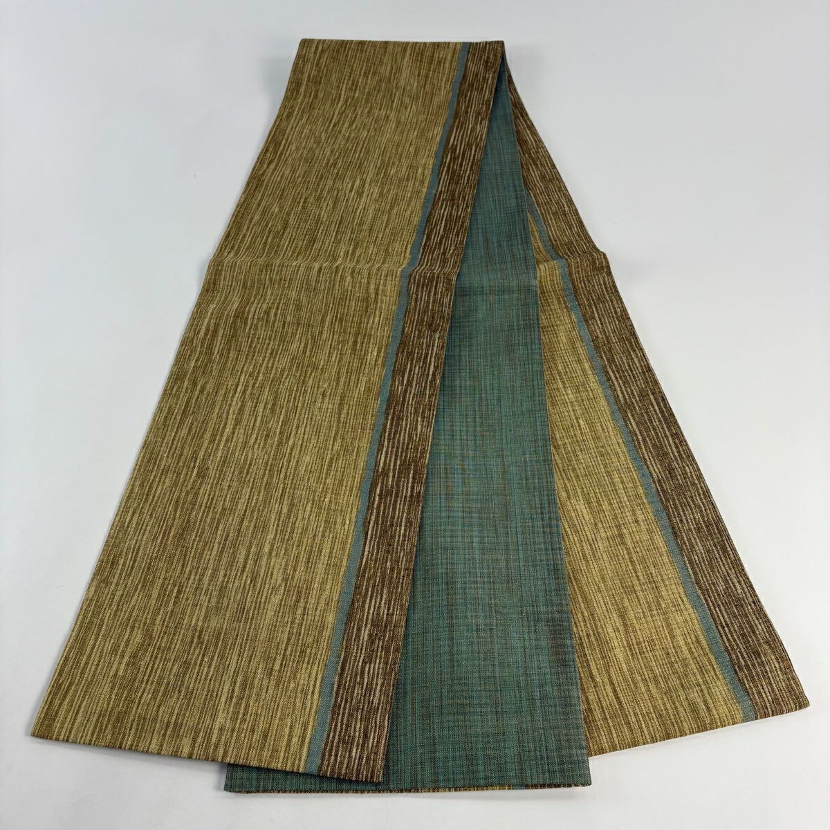 【美品】 袋帯 秀品 縞 金糸 黄土色 全通 正絹