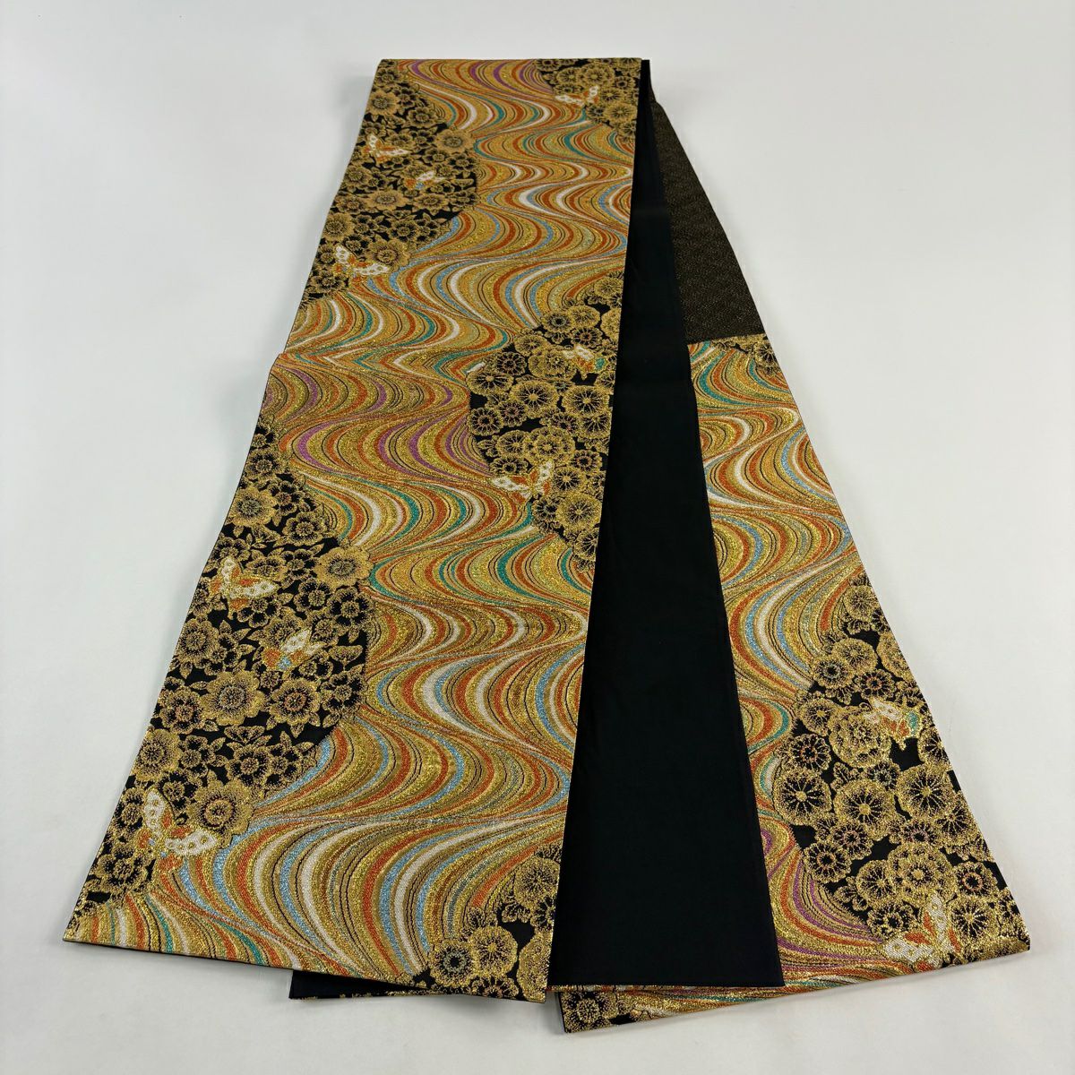 【美品】 袋帯 秀品 色紙 菊 箔 金色 六通 正絹