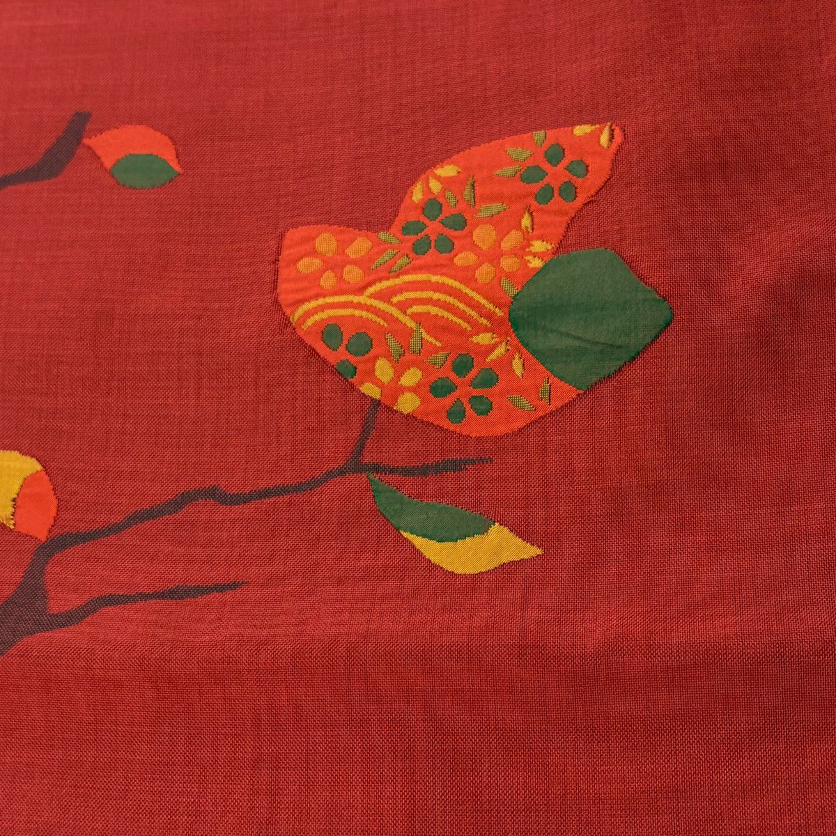 【美品】 袋帯 秀品 関西仕立て 枝梅 菊 金糸 箔 オレンジ 六通 正絹