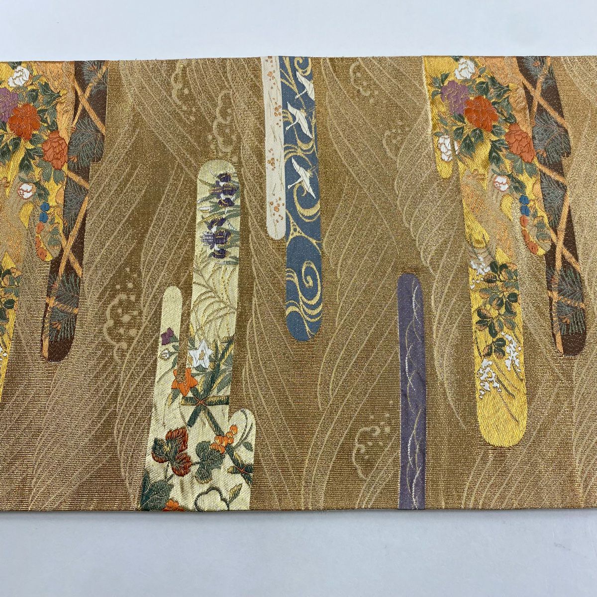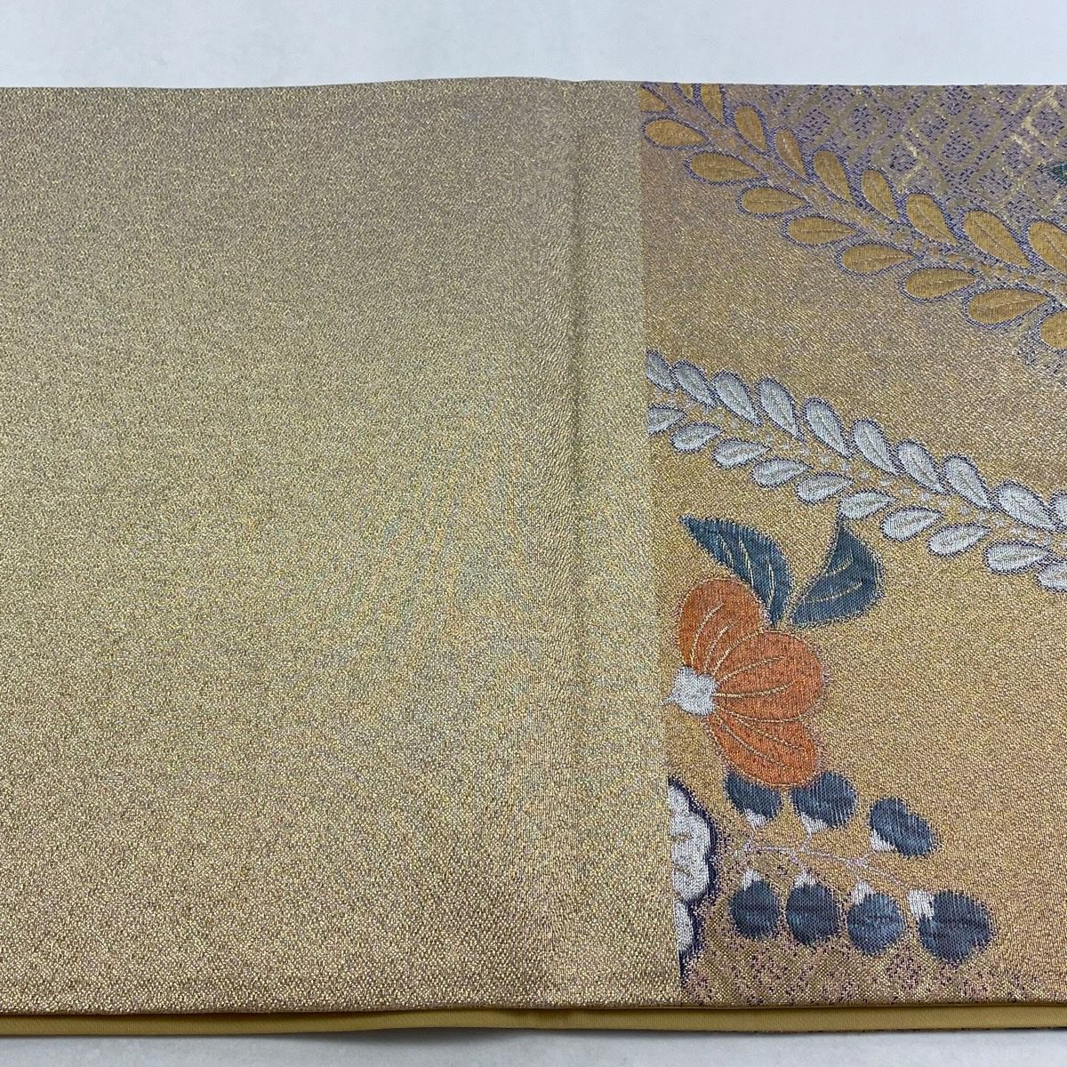 【美品】 袋帯 秀品 文箱 草花 箔 金色 六通 正絹