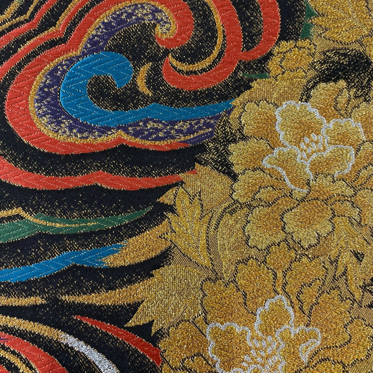 【美品】 袋帯 秀品 華文 花鳥 金糸 箔 墨色 六通 正絹