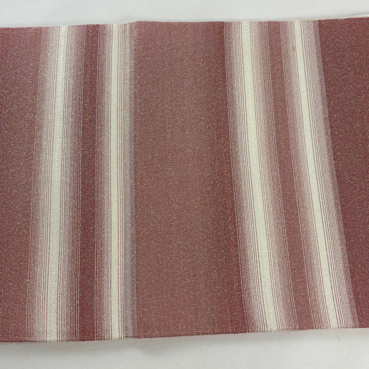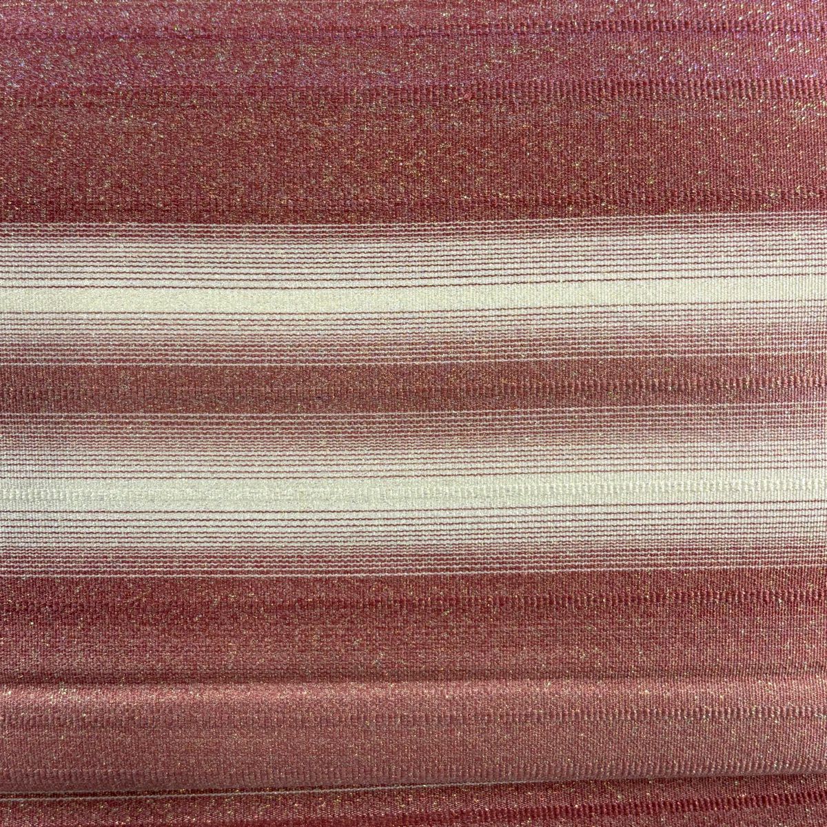 【美品】 袋帯 秀品 段縞 ラメ箔 ピンク 全通 正絹