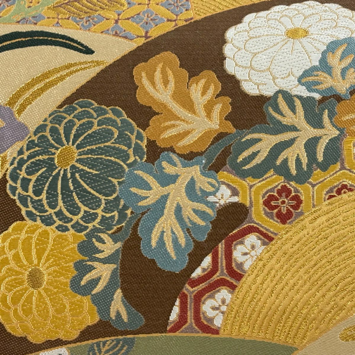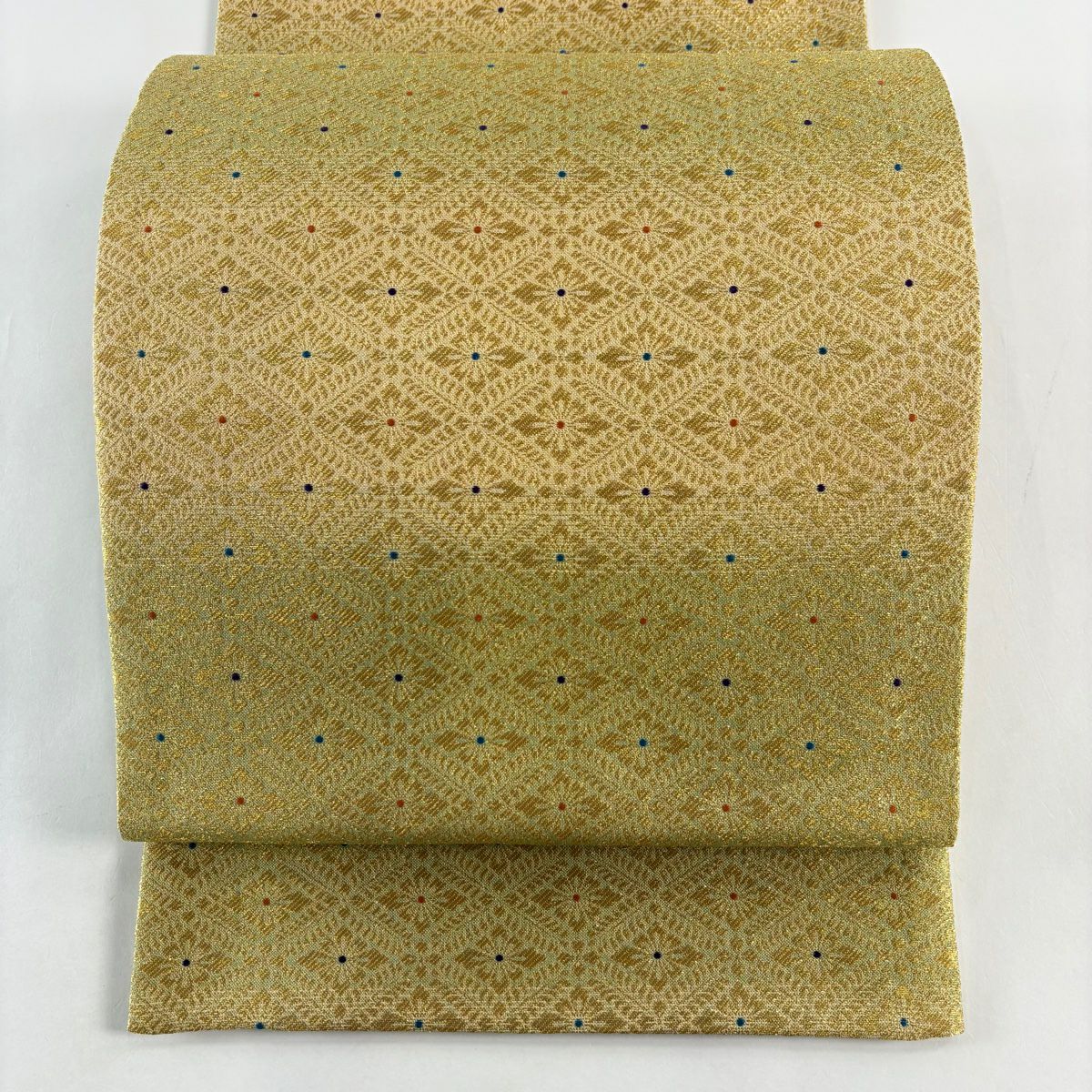 【美品】 袋帯 秀品 菊花菱 金糸 金色 六通 正絹