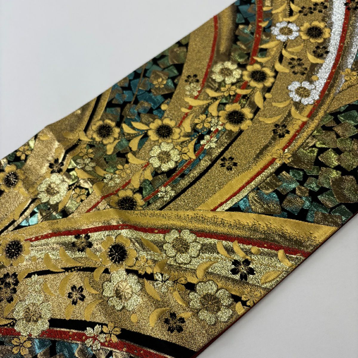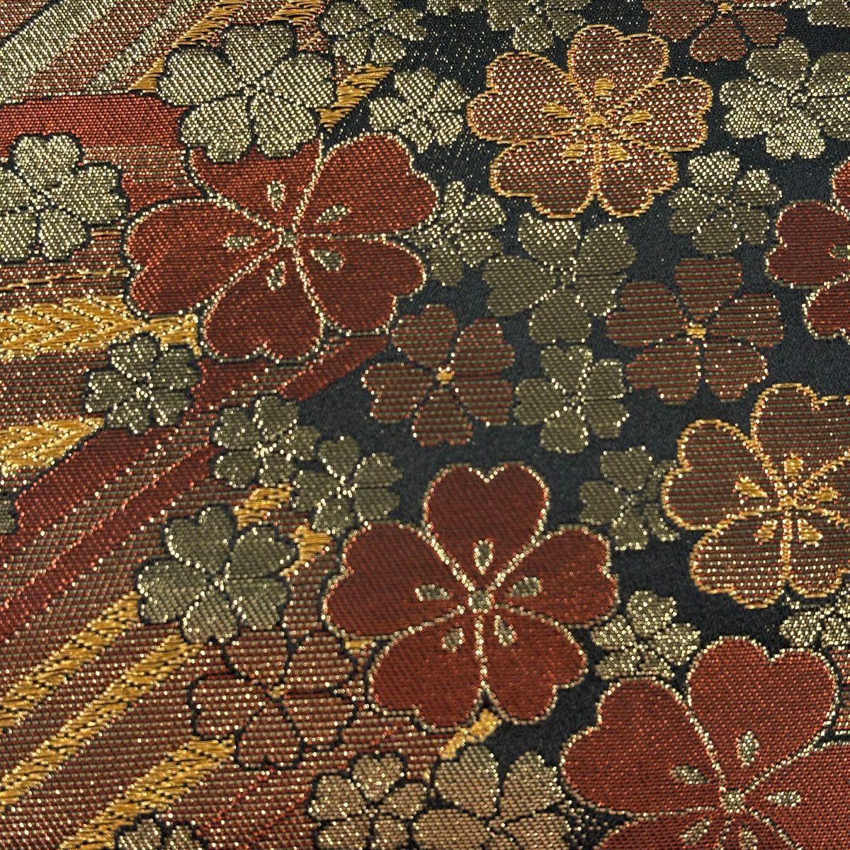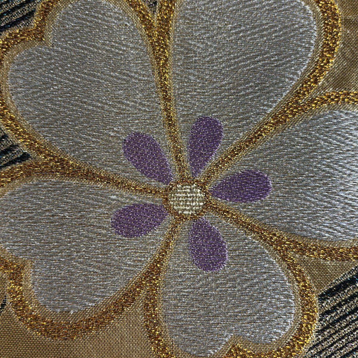 【美品】 袋帯 秀品 桜 幾何学 箔 金糸 金色 六通 正絹