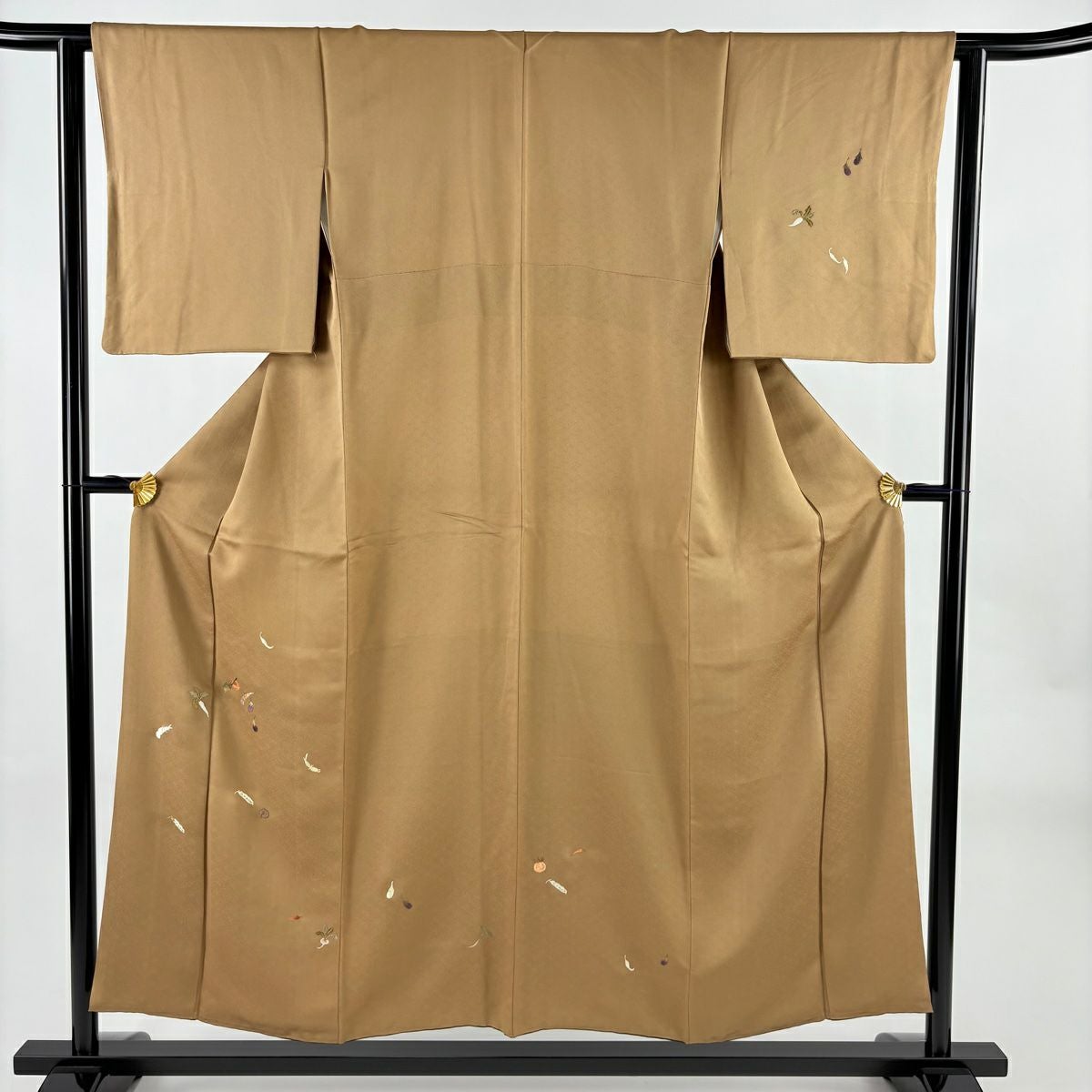 【美品】 付下げ 身丈152.5cm 裄丈62cm S 袷 生り物 地紋 刺繍 金糸 薄茶色 正絹 秀品