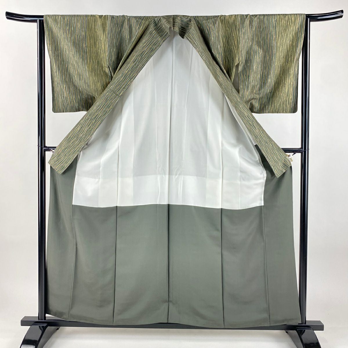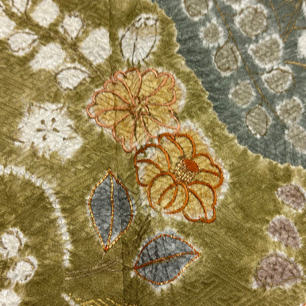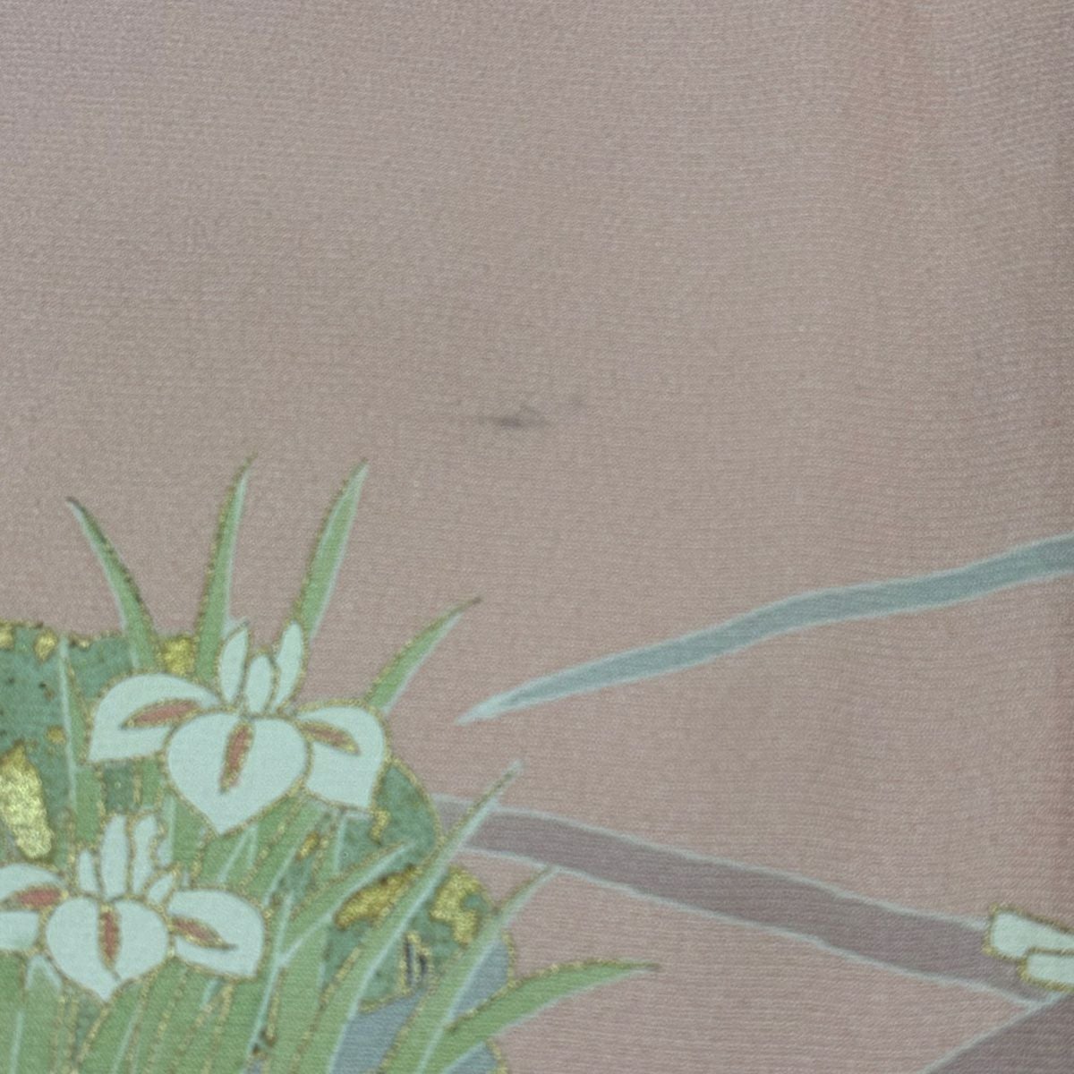 訪問着 身丈162cm 裄丈66cm M 袷 草花 道長取り 金彩 絞り 灰緑 正絹 秀品