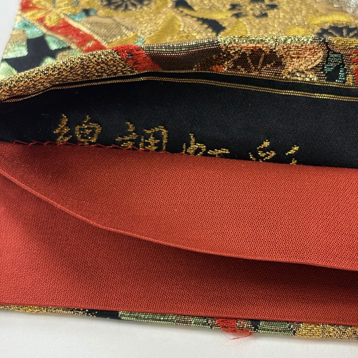 【美品】 袋帯 秀品 御所車 牡丹 箔 金糸 赤黒 六通 正絹