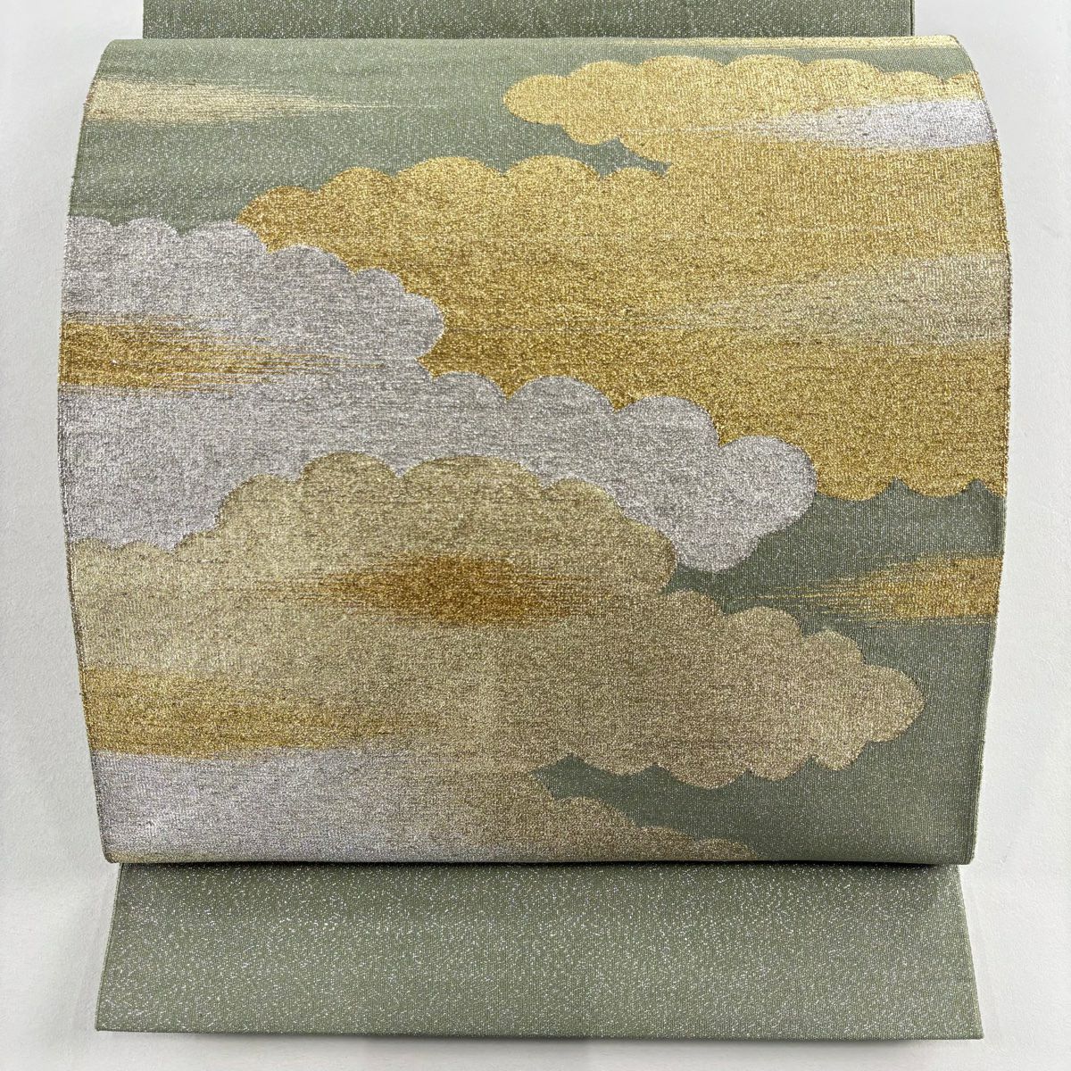 【美品】 袋帯 秀品 冊子 霞 金銀糸 箔 灰白 六通 正絹