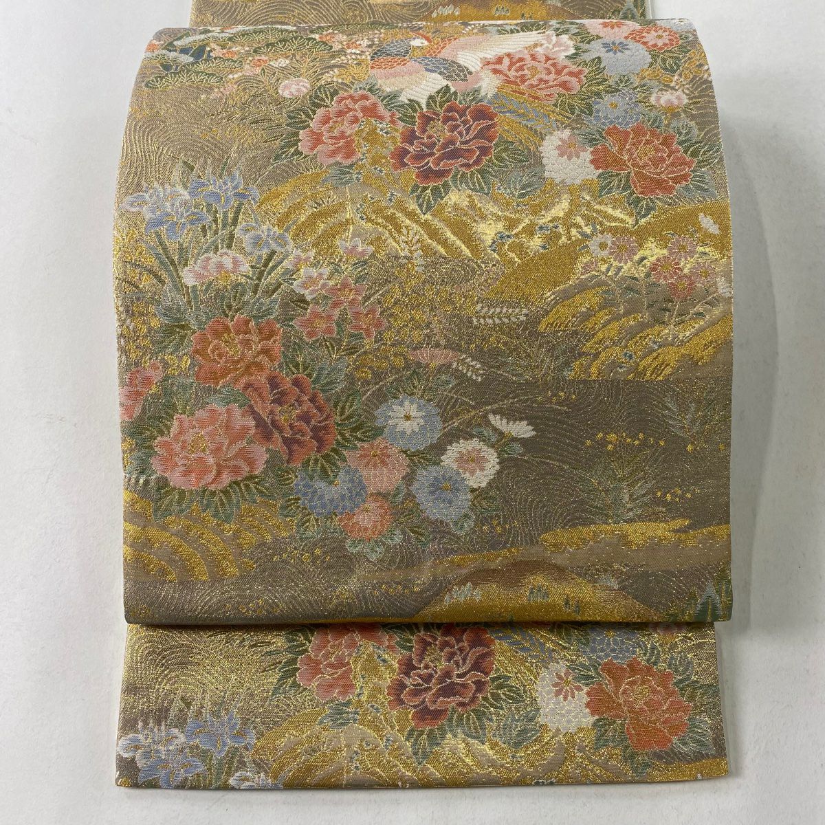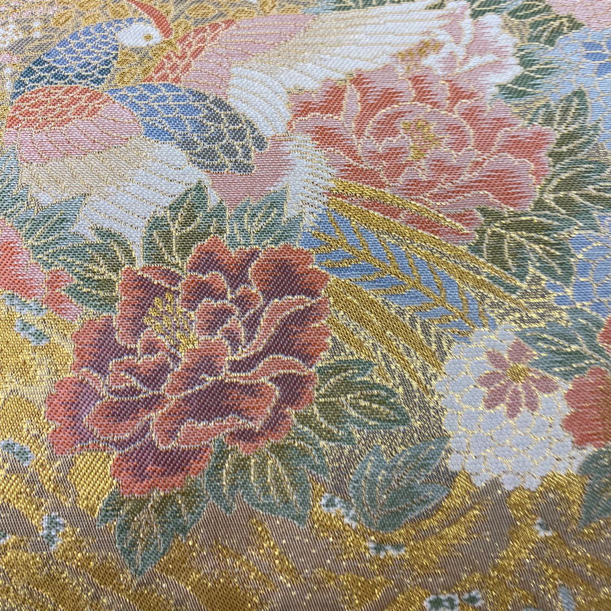 袋帯 美品 秀品 鳥 草花 金糸 箔 金色 六通 正絹